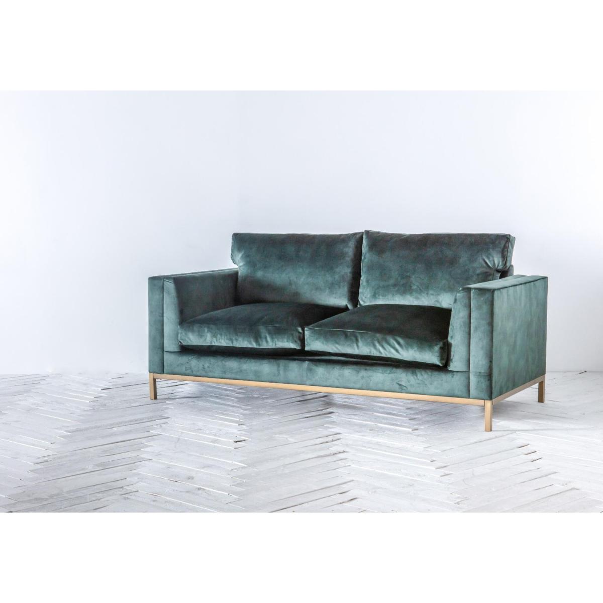 Discover the Jamie three-seater sofa, a design with an utterly stylish retro flair. In this compact sofa, upholstery and a golden metal base blend beautifully for a sophisticated design, with a deeply-cushioned seat and angled arms. Available in over a hundred fabrics to choose from, each Jamie is made to order exclusively for you, and as such, it's the perfect piece to sink into after a long day while giving the room a personal look.