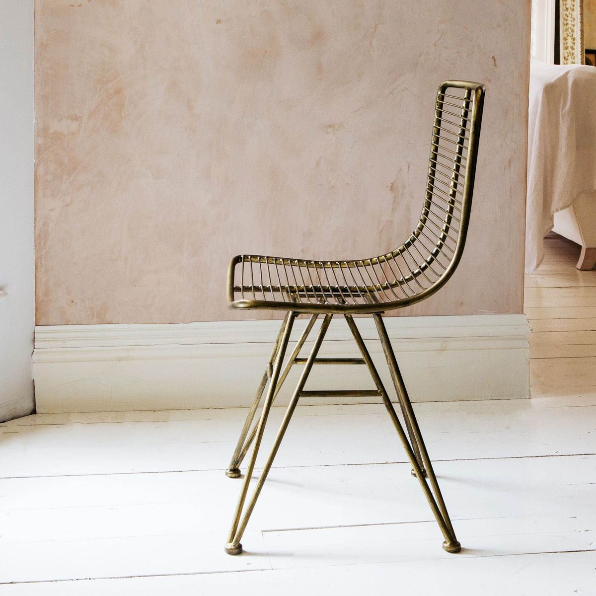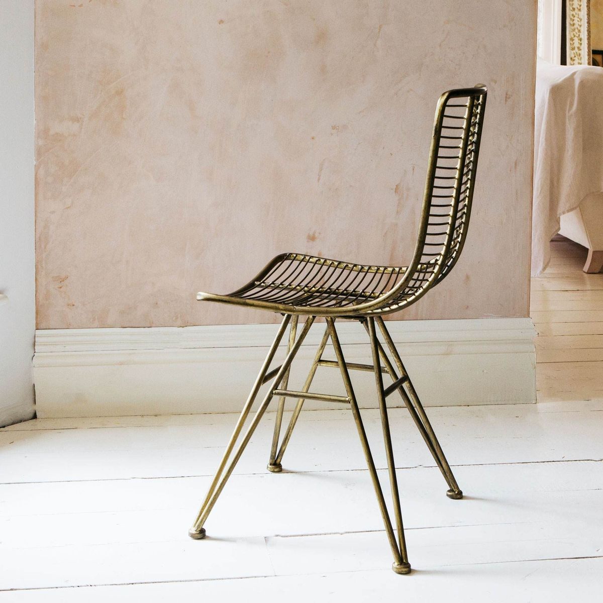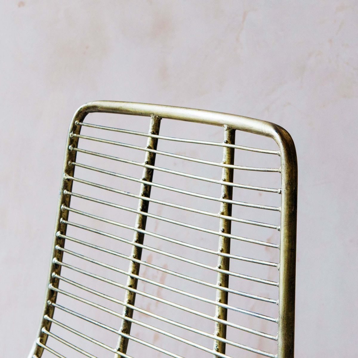 Made of iron with a metallic gold finish, our Jana dining chair features a linear design with a gently curved shape for a long, comfortable sit.
