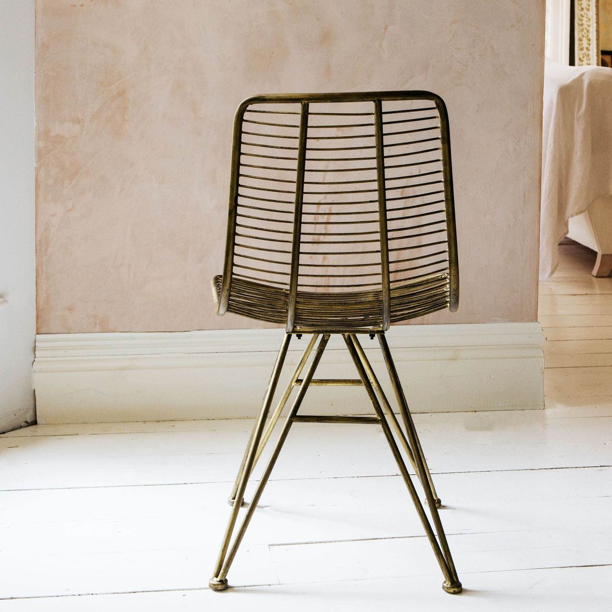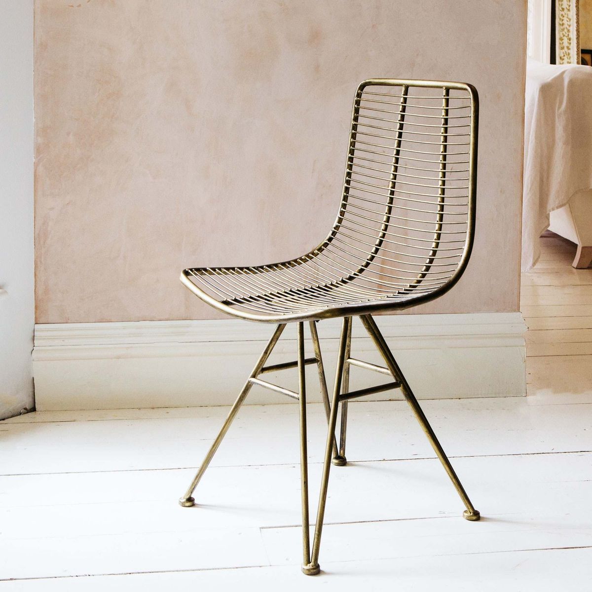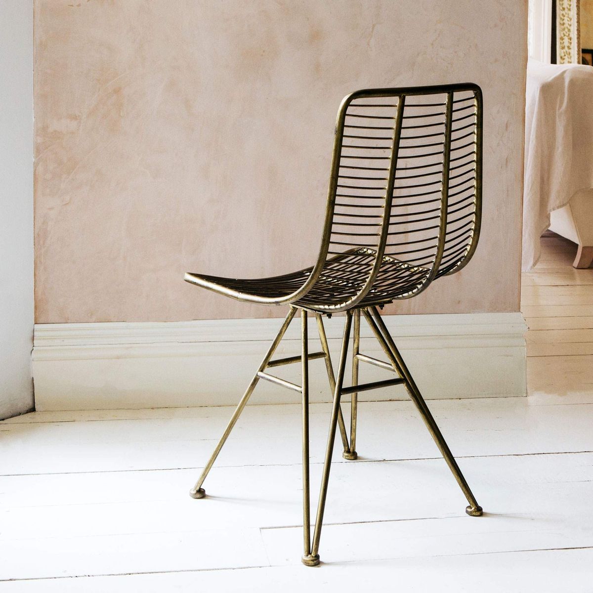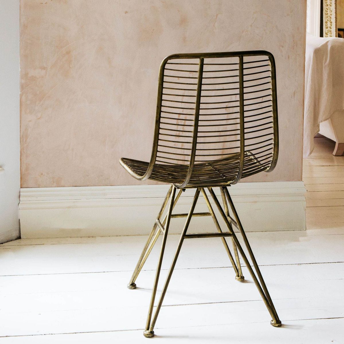 Made of iron with a metallic gold finish, our Jana dining chair features a linear design with a gently curved shape for a long, comfortable sit.