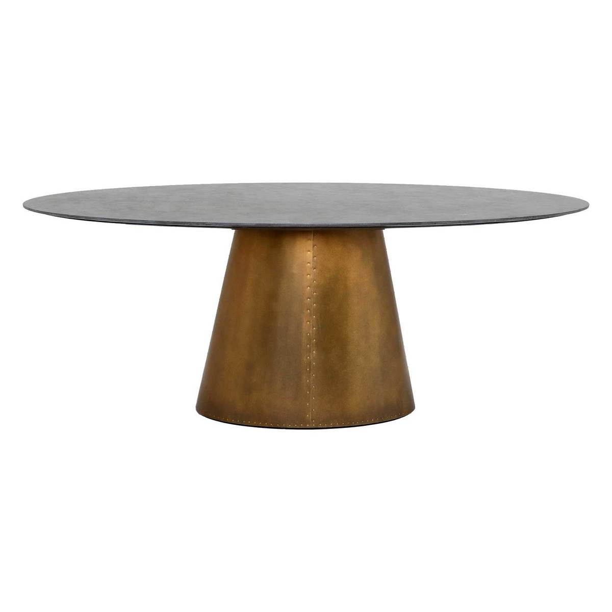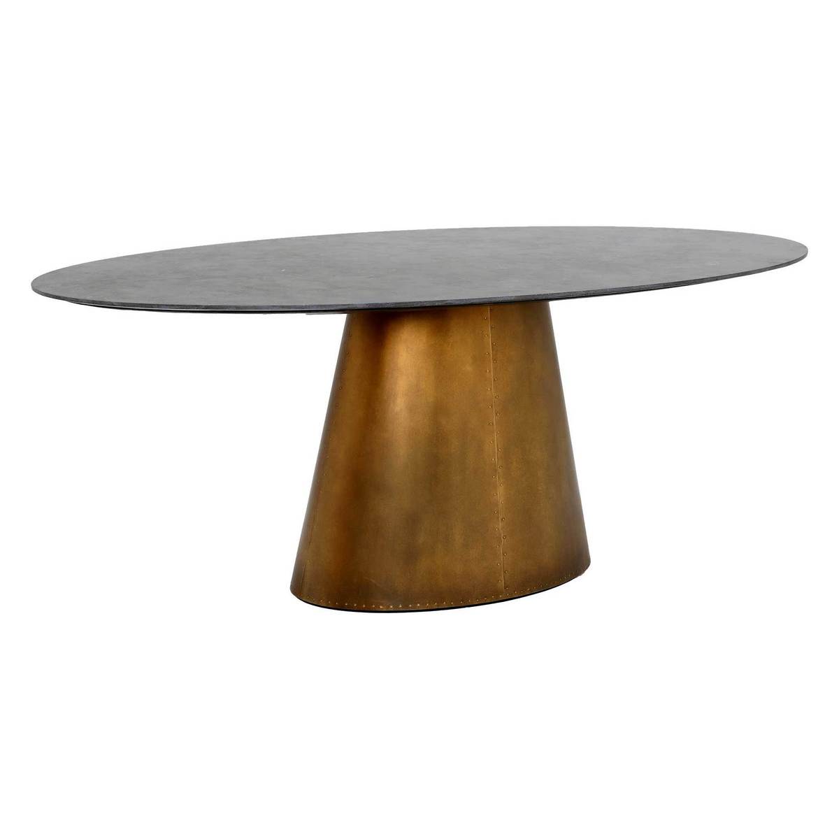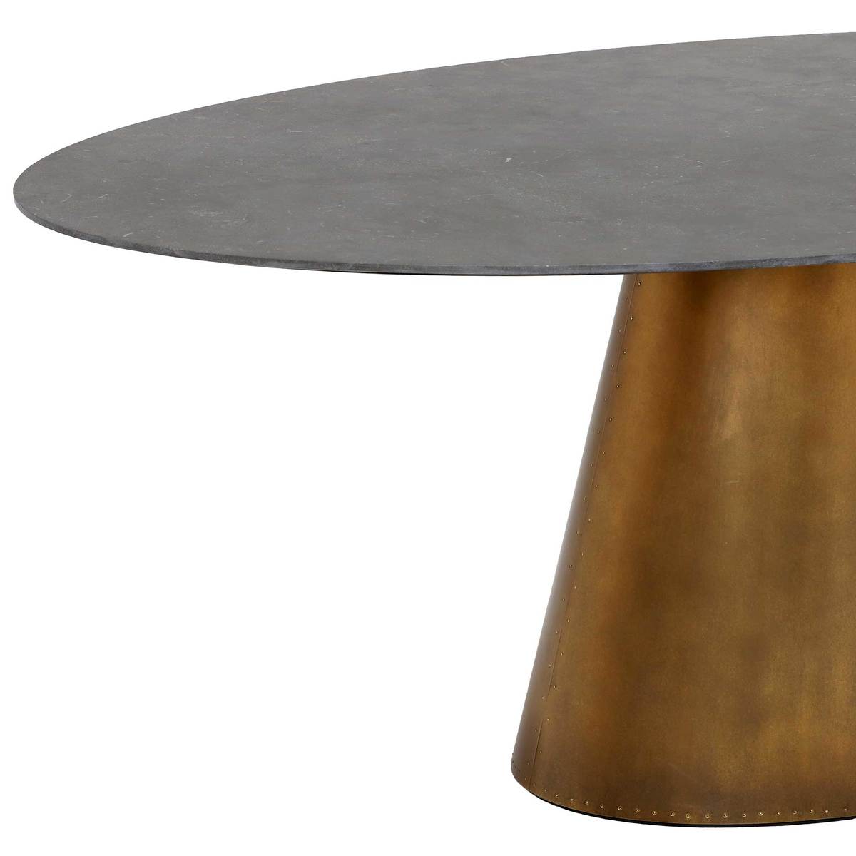 A statement, thick brass finished base that beautifully contrasts with its streamline natural bluestone top, the Janco Oval Dining Table pulls out all the stops when it comes to chic and luxury industrial style. Ample room for family and friends to dine in comfort – as well as making an excellent focal point in a range of dining spaces, the Janco can be matched with characterful leather to complete its urban appeal, or sumptuous velvet for a delicate contemporary touch.