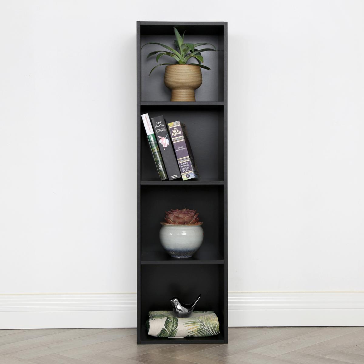 Introducing the 4x1-built Jane bookcase, a practical and flexible storage solution created to meet your organisational needs. This shelf unit is offered in the two classic finishes of oak or black. Each variant offers a trustworthy and practical shelf unit storage option that complements your home's design. You have plenty of space to arrange your books, decorations, and other items thanks to the bookcase's 4x1 cube storage design. You may store your treasures with confidence for a very long time because of its sturdy design, which ensures stability and longevity. For those who want a clean and minimalist look, the cube storage boxes on the wood and black variants of this bookcase are not included. Thanks to its layout, your products may be conveniently accessed and displayed as intended. If you need a versatile shelf unit for your living room, bedroom, or workplace, our 4x1 Jane bookcase is perfect. Finally, this bookcase, which comes in oak or black, offers a solid and useful cube storage option. Your storage capacity can be increased by using this durable and versatile shelf unit bookcase, which can be placed in any room of your home.