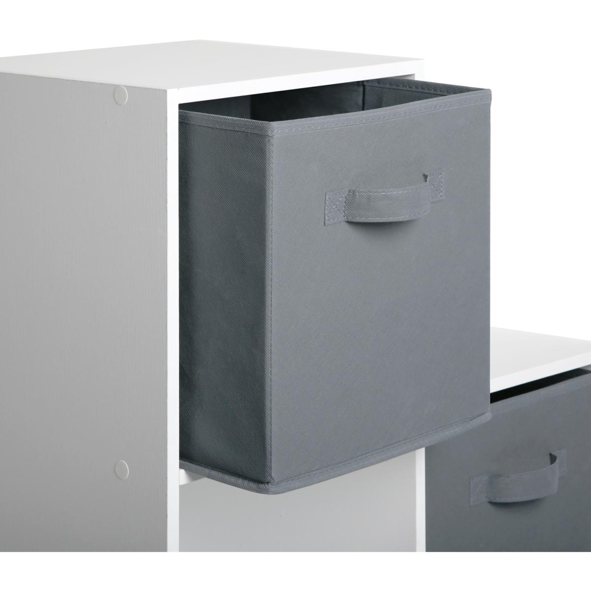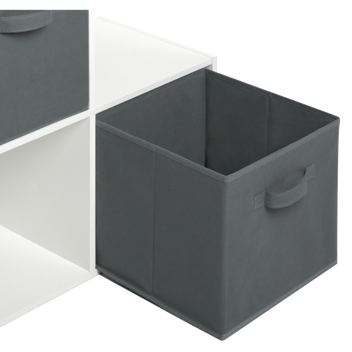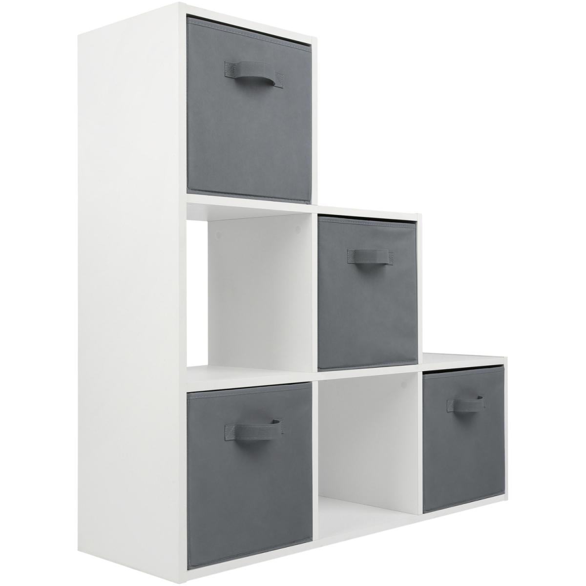 The 6 box staircase shelf is perfect for keeping the house tidy and organised. This bookcase features four grey fabric storage boxes and can be placed under stairs or any other awkward angle in the house. A ladder design makes the Cube Storage Unit perfect for small spaces like hallways and landing. This ladder-style bookcase features six cube compartments that form horizontally descending steps for more aesthetic appeal and efficient use. If you're looking to optimise your living space, organise your possessions, and add some modern style to your storage methods, this staircase shelf built-in cubes is a fantastic option. It is exceptionally crafted interior furniture that is fabulous and functional. Made of high-quality materials, it is the ultimate unit of storage efficiency. This simple bookcase with its baskets will help make an amazing difference towards achieving your tidy home goals. You can stash away books, kids' toys, or anything that doesn't have its own designated space. Being an 6-cube bookcase, it has enough room to contain as many items as possible.
