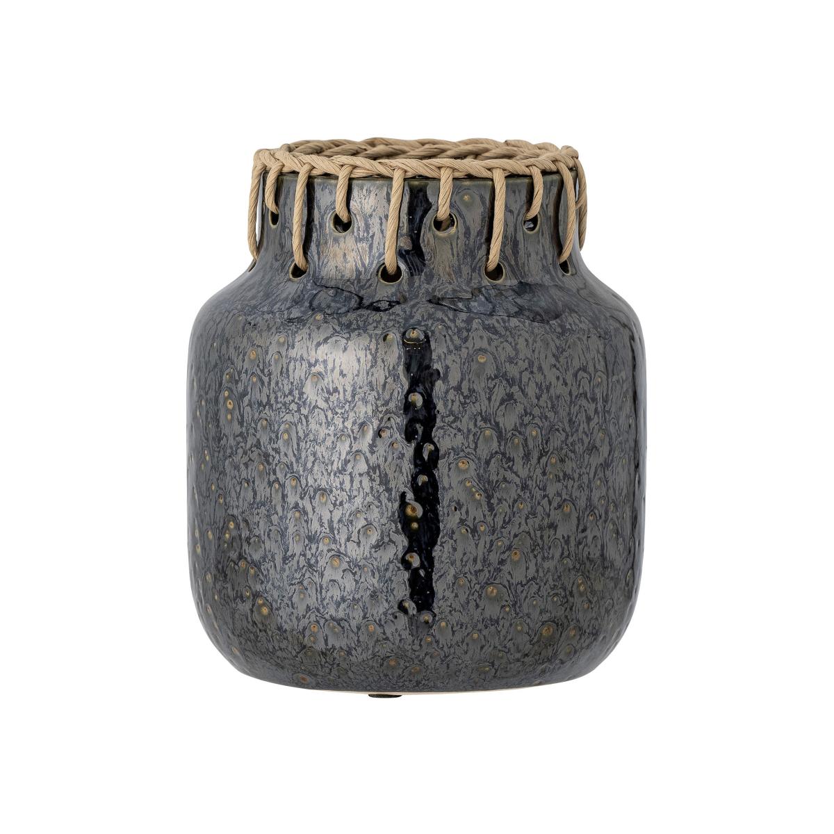 Janel Vase ceramic black / Ceramic & Rattan - Ø 17 x H 21 cm - Bloomingville