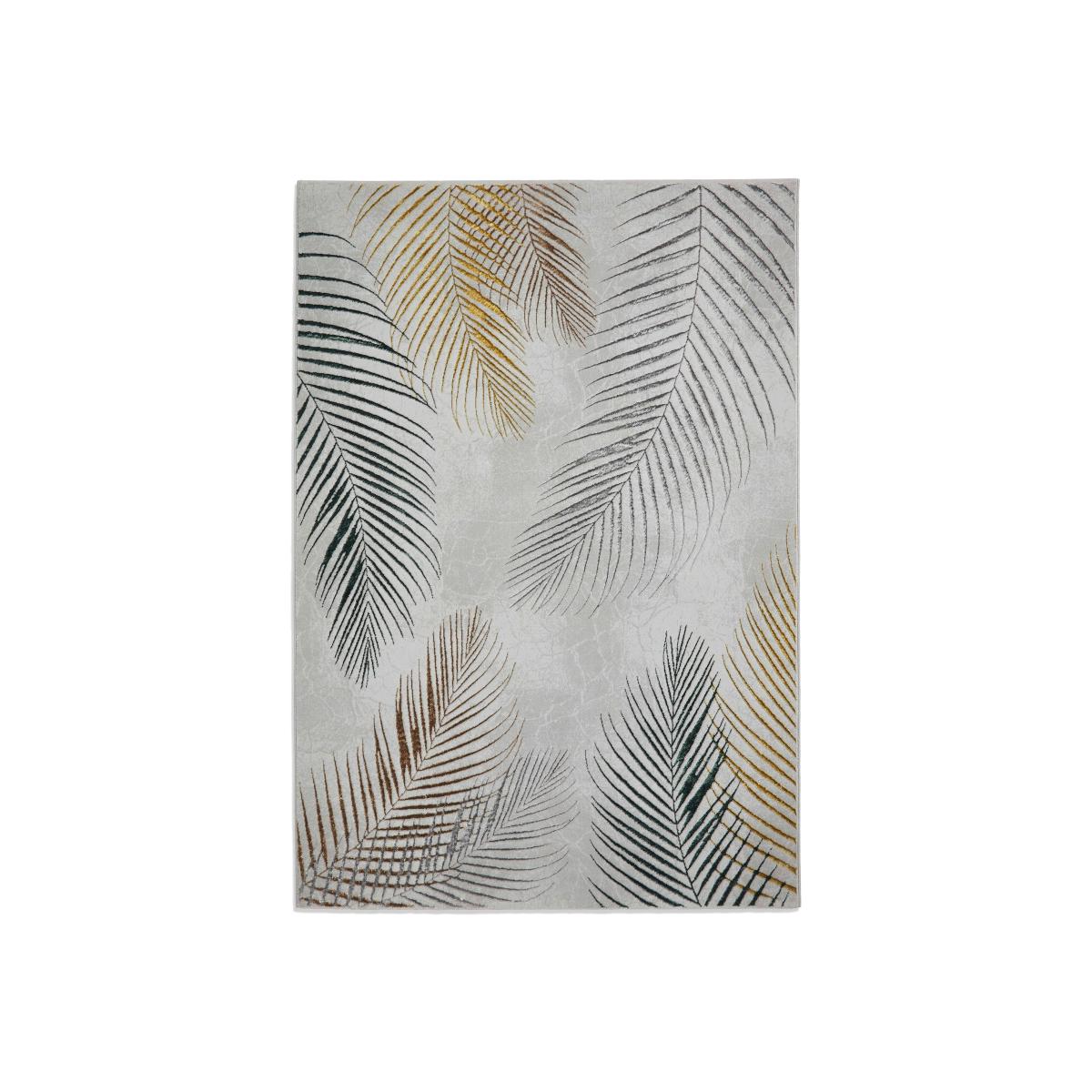 Stylised tropical fronds with a metallic-effect finish adorn this beautiful modern rug. Available in a choice of colourways and sizes, the only question is – which one will you choose?Why you'll love it This tropical-inspired rug is like a holiday destination for your floor. Eye-catching modern design. Choice of sophisticated colourways. Metallic-effect finish. Dense soft pile feels wonderful under foot. Very durable and hardwearing. In a range of sizes. This rug is part of the Furniture Village home accessories collection. What you need to know Made of polypropylene and polyester. Shallow pile. For indoor use only. Easy to clean – vacuum regularly. Blot stains; do not rub.
