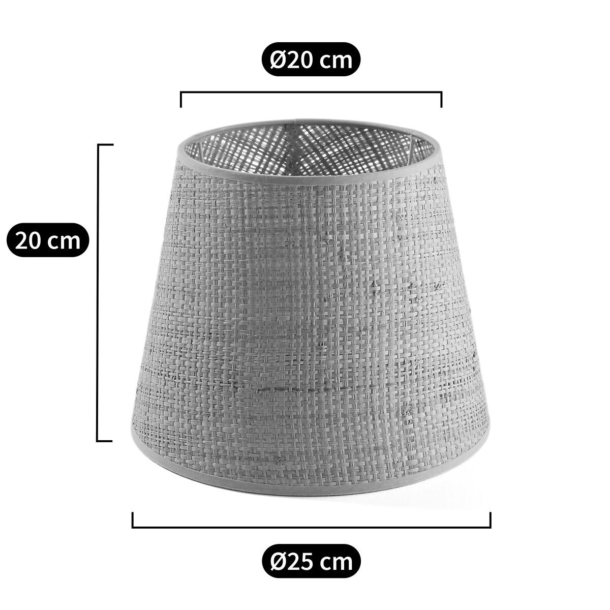 You won't be able to resist this lampshade. The woven raffia diffuses the light beautifully. Looks great by itself or teamed with other raffia shades!Product Details • Raffia lampshade • Galvanised steel structure covered with epoxy paint • Compatible with E27 bulb (not included) • This product is sold non-electrified. Find the Baulind electric cable sold on our site. Dimensions • Diameter: 20/25cm • Height: 20cm • Made in France. Parcel Dimensions1 parcel • L26 x H26 x D26cm • 0.4kg