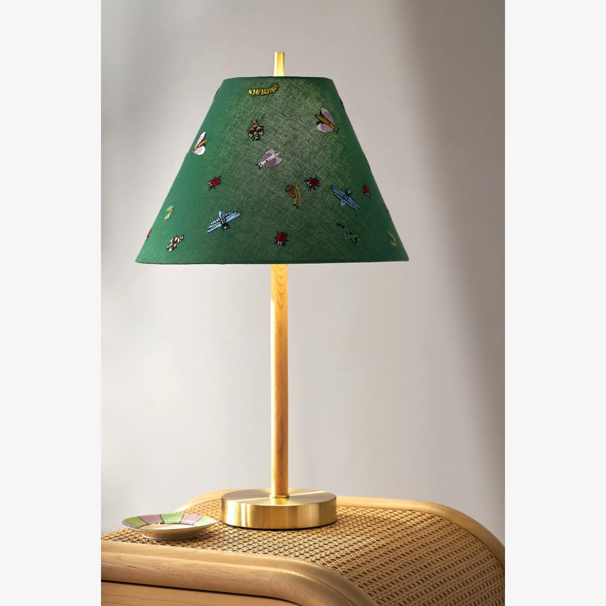 Exclusively for Anthropologie Hardbacked Cotton/linen shade with spider fitting Machine-embroidered embellishments Metal hardware Tapered silhouette Imported Janie Empire Embroidered Lampshade by Anthropologie in Green