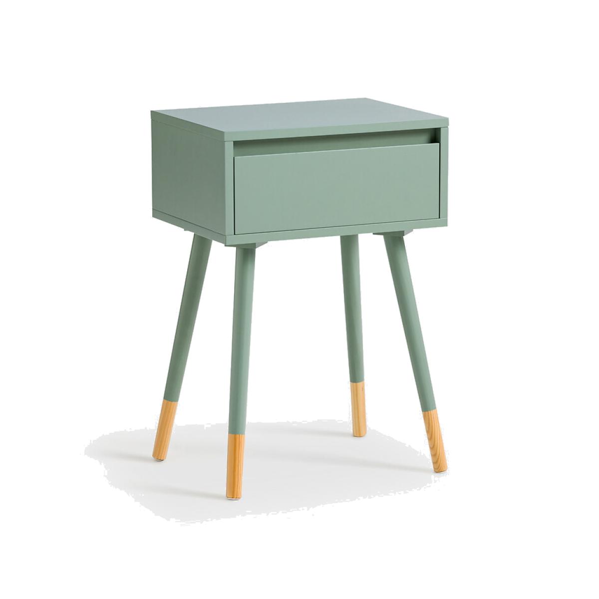 This sleek Scandinavian style bedside table is very practical with its storage drawer. Product Details • Table with 1 drawer. • Cupboard frame in lacquered MDF with nitrocellulose varnish finish • Two-tone legs in solid pine with nitrocellulose finish. Dimensions • Width 40cm • Depth 30cm • Height 59.4cmDelivery:. This product requires assembly. Available for home delivery. Note! Please check that all access points are large enough to accommodate your delivery (doors, stairs, lifts). • WOOD FROM SUSTAINABLY MANAGED FORESTS. FSC® certified wood comes from forests that are environmentally, socially and economically well managed. Dimensions and weight of parcel • 1 parcel • 51.5 x 36.5 x 16cm, 7.3kg