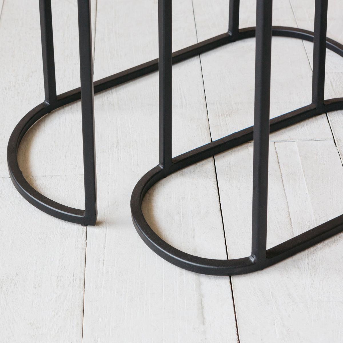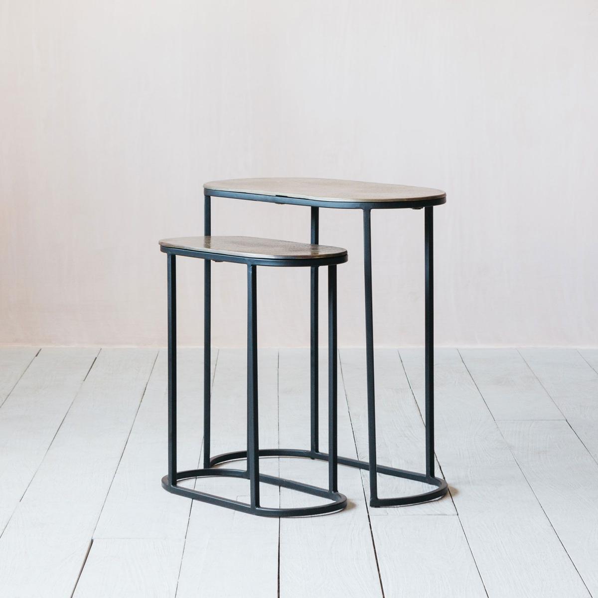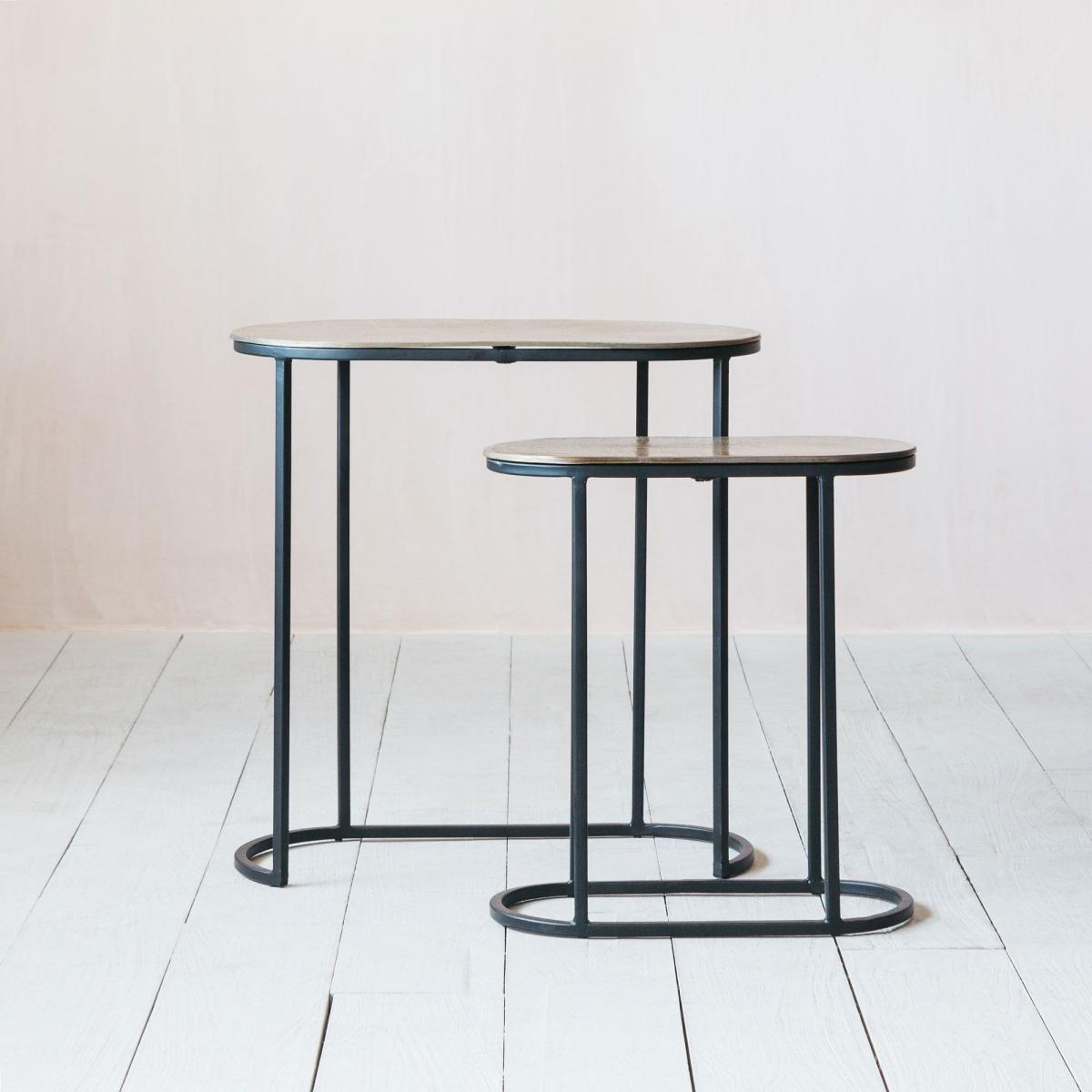 Minimalism at it's very best, get ahead of the curve with these oval side tables that fit neatly into one another and are complete with sleek black iron legs.