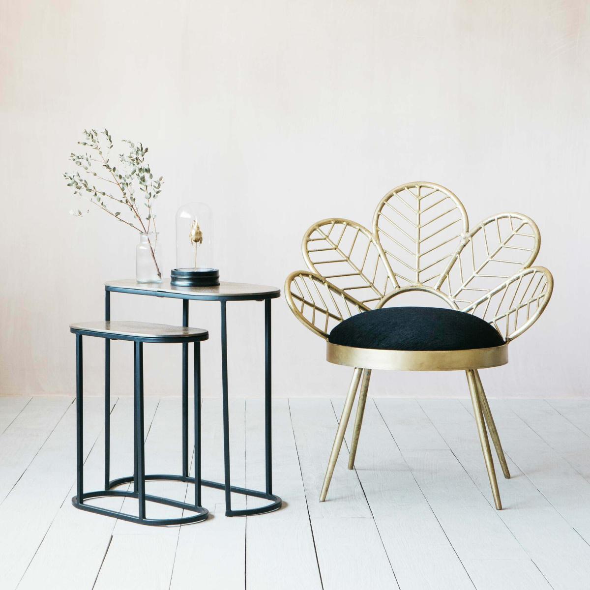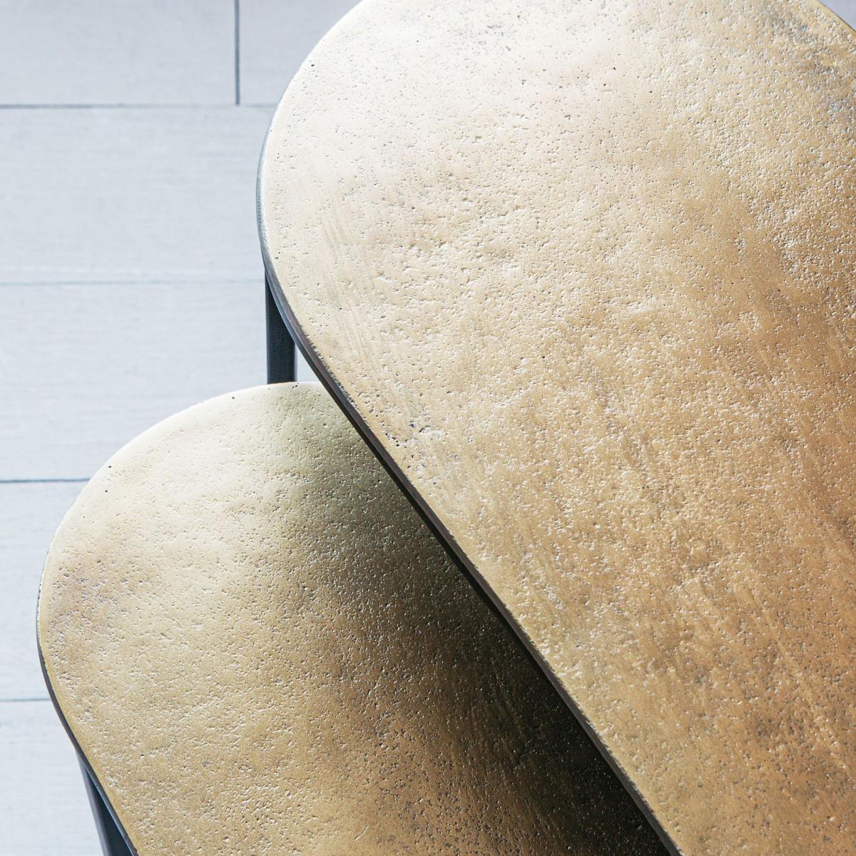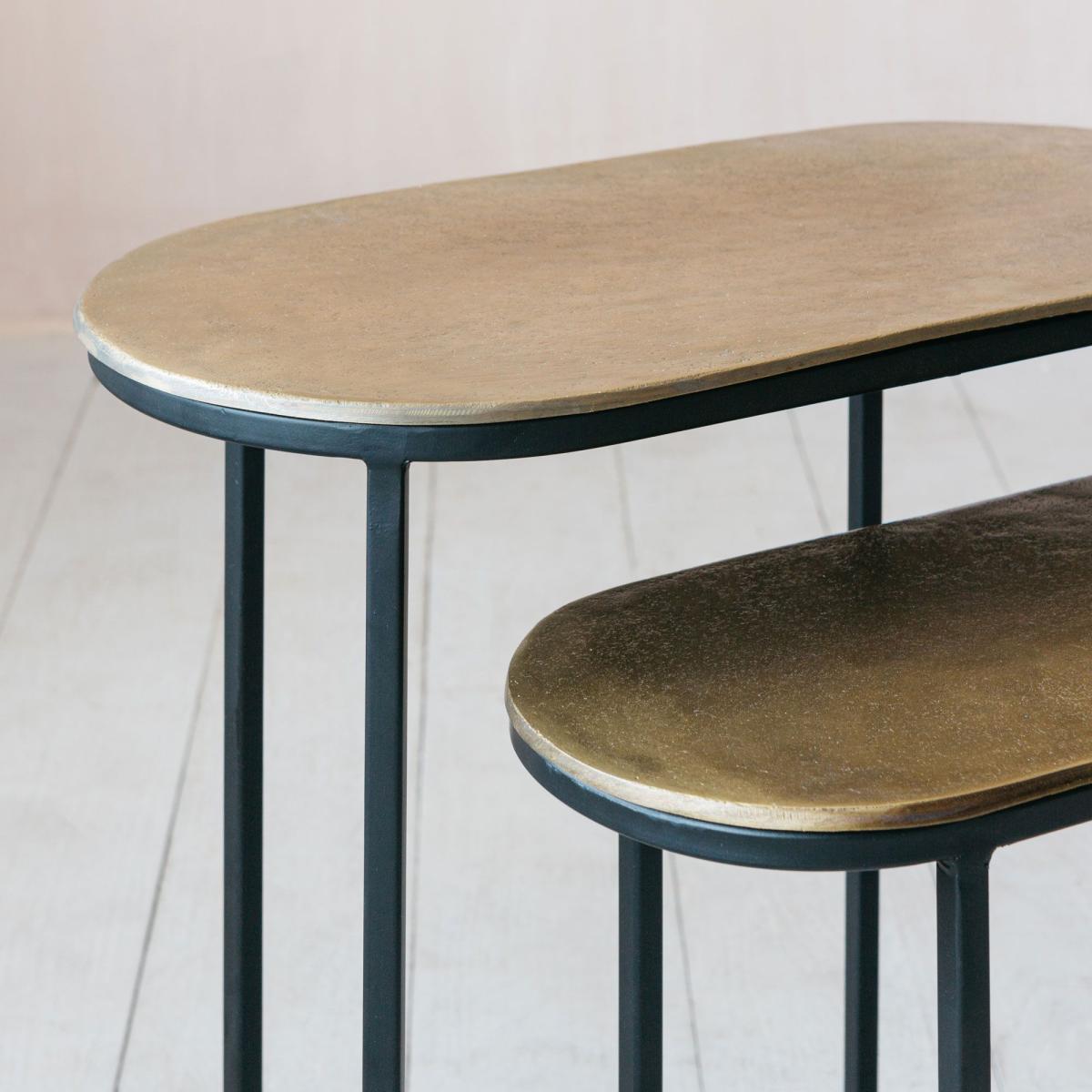 Minimalism at it's very best, get ahead of the curve with these oval side tables that fit neatly into one another and are complete with sleek black iron legs.