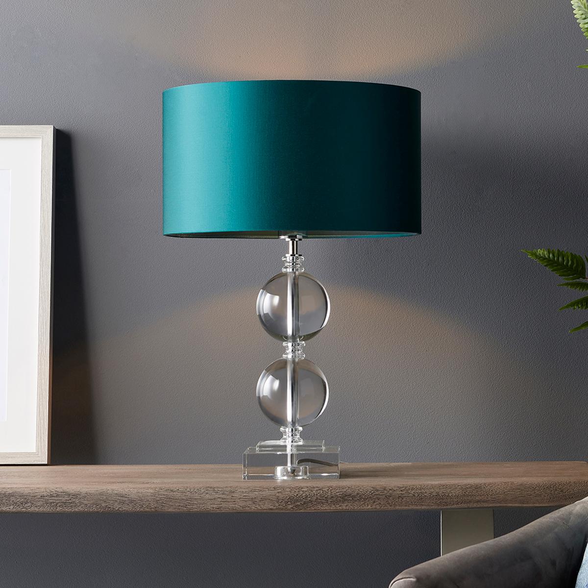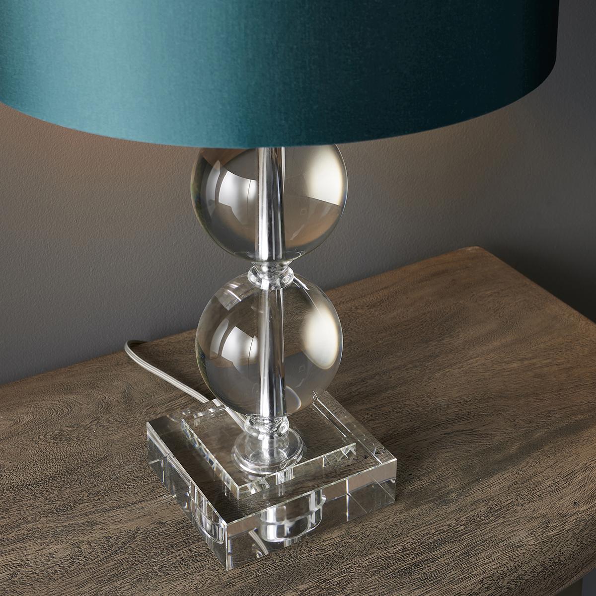 Keep your tables and desks looking crystal clear with the Janu Double Bubble table lamp holder. This versatile table lamp is beautifully constructed from crystal glass and steel and with its desirable silhouette is a sophisticated choice for your home.