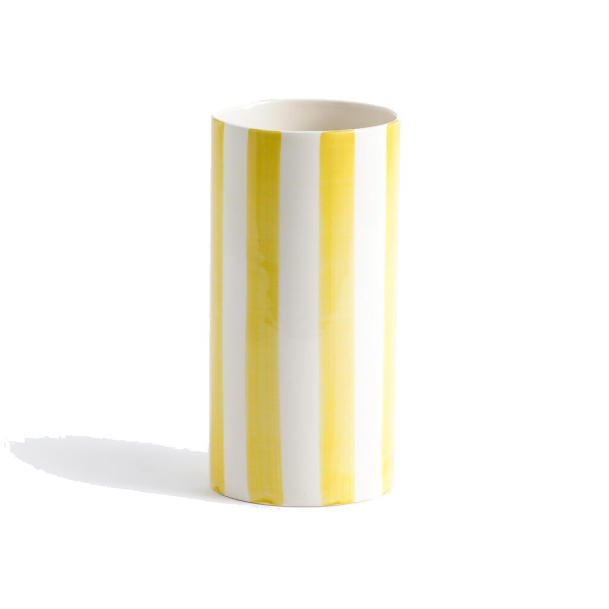 I love this striped ceramic vase for its bold yet simple design, making it a versatile piece that can easily slot into various interiors. Its height makes it ideal for both standalone statement displays or grouped with other decorative objects. It works particularly well in contemporary or minimalist spaces, adding a splash of colour and pattern without overpowering the room. For styling, try filling it with fresh or dried florals in complementary colours, or leave it empty as a sculptural accent on a shelf or side table. Its straightforward design and cheerful stripes make it a practical choice for bringing character to kitchens, living rooms, or offices.