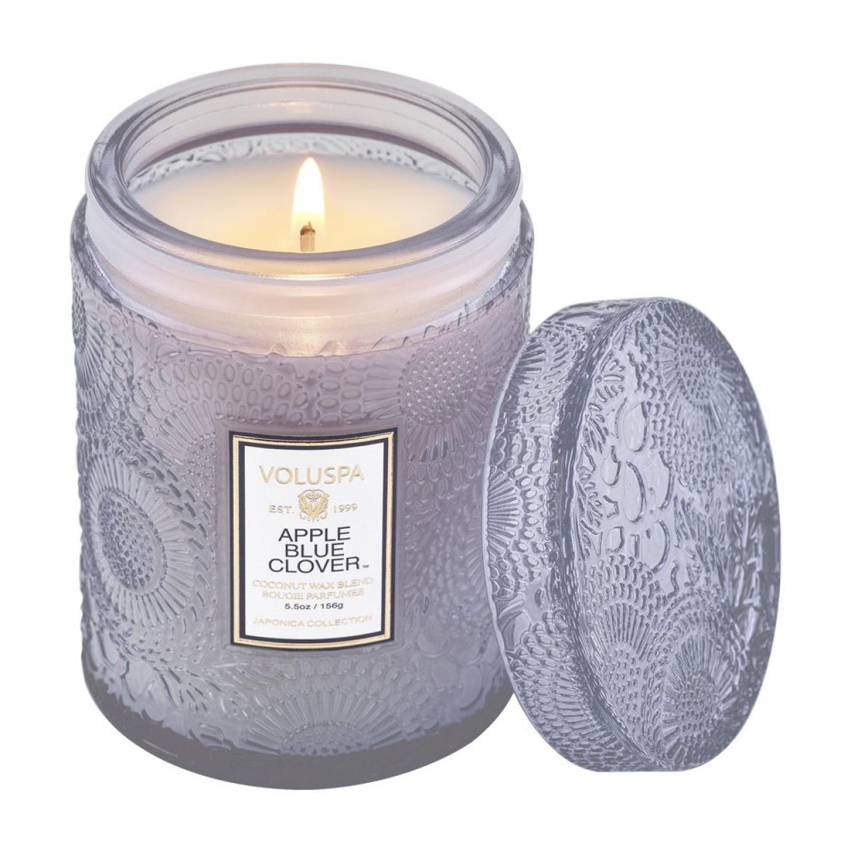 Japonica scented i glass jar 50 hours Apple Blue Clover