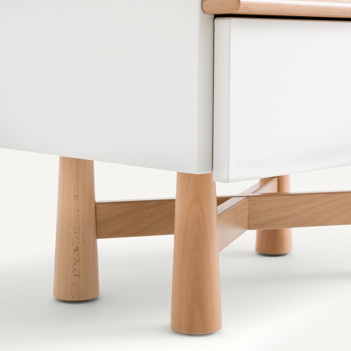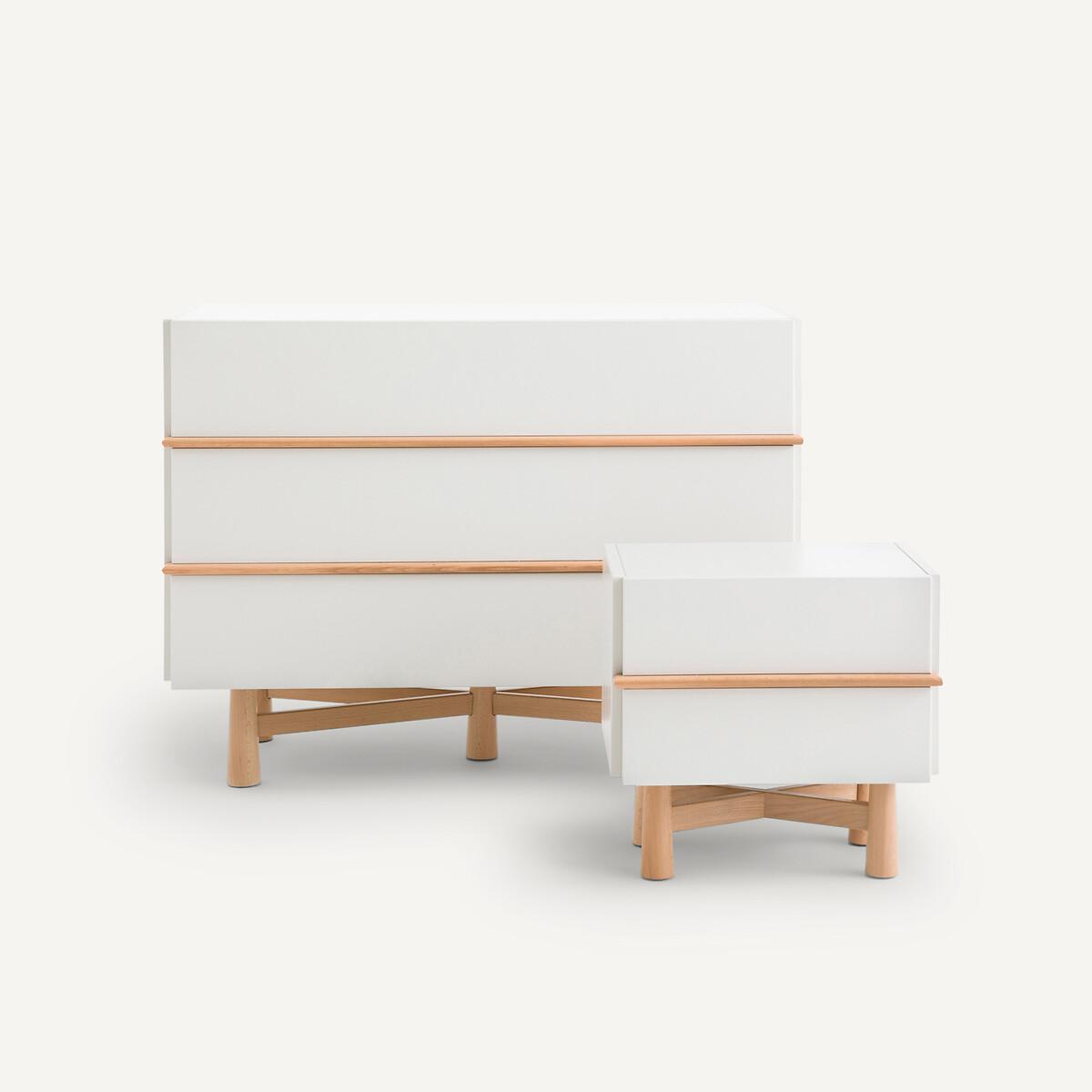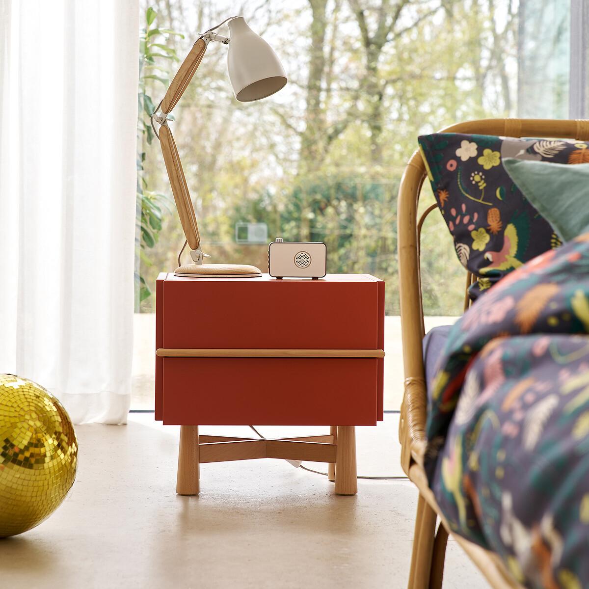 The perfect synthesis of Scandinavian and Japanese design, this lacquered bedside table is highlighted by a thin horizontal handle and a solid beech base. Japoto is ideal in a child's or teenager's bedroom. Its smooth surfaces conceal two discreet and functional drawers. A contemporary exclusive by AMPM.Product Details • MDF cabinet and drawers with matte lacquered fronts, in a choice of 2 colours, water-based paint. • Horizontal base and handles in solid beech. Quality Info • Wood is a living material. The differences in shades, grains and knots reinforce its character and authenticity.. Dimensions Overall • Width: 47cm • Height: 45cm • Depth: 36cm • Base height: 16.5cm. Usable space • Each of the 2 drawers: L39 x H7 x D28cmDelivery:. Sold pre-assembled. Available for home delivery. Note! Please check that all access points are large enough to accommodate your delivery (doors, stairs, lifts). • Made in Europe. • WOOD FROM SUSTAINABLY MANAGED FORESTS. FSC® certified wood comes from forests that are environmentally, socially and economically well managed. Dimensions and weight of parcel • 1 parcel • L54.5 x D42 x H51.5cm, 18.4kg.