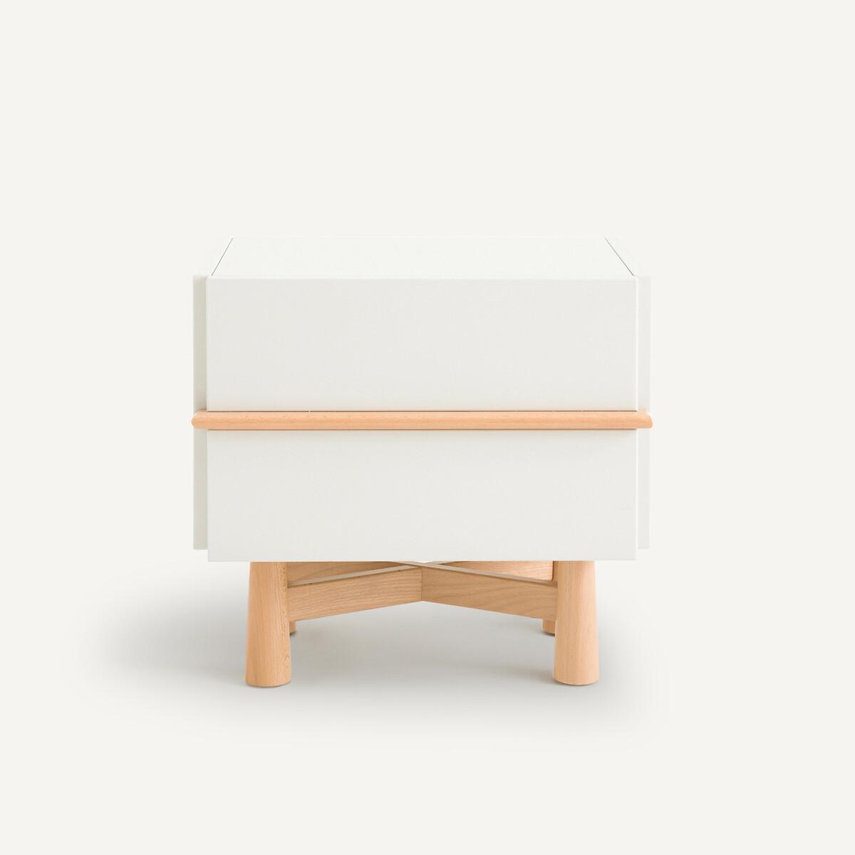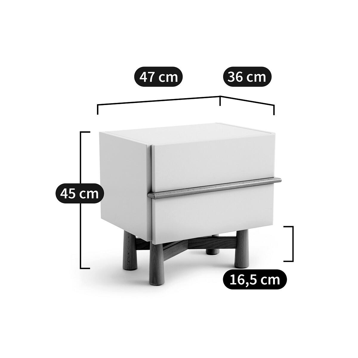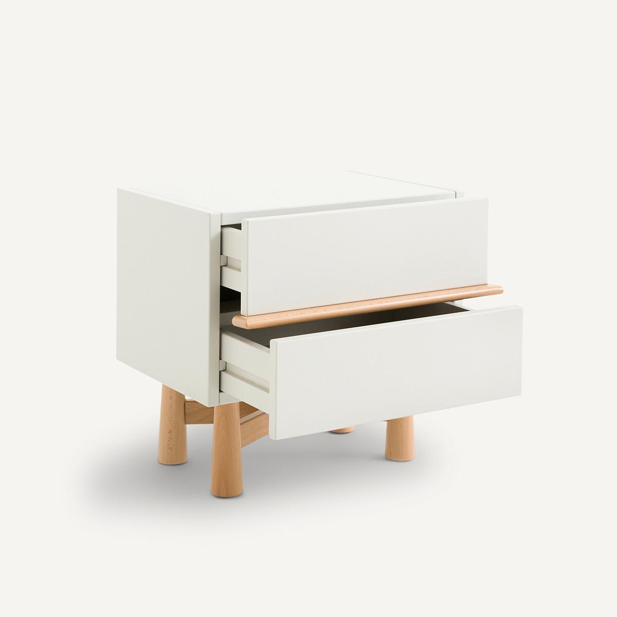 The perfect synthesis of Scandinavian and Japanese design, this lacquered bedside table is highlighted by a thin horizontal handle and a solid beech base. Japoto is ideal in a child's or teenager's bedroom. Its smooth surfaces conceal two discreet and functional drawers. A contemporary exclusive by AMPM.Product Details • MDF cabinet and drawers with matte lacquered fronts, in a choice of 2 colours, water-based paint. • Horizontal base and handles in solid beech. Quality Info • Wood is a living material. The differences in shades, grains and knots reinforce its character and authenticity.. Dimensions Overall • Width: 47cm • Height: 45cm • Depth: 36cm • Base height: 16.5cm. Usable space • Each of the 2 drawers: L39 x H7 x D28cmDelivery:. Sold pre-assembled. Available for home delivery. Note! Please check that all access points are large enough to accommodate your delivery (doors, stairs, lifts). • Made in Europe. • WOOD FROM SUSTAINABLY MANAGED FORESTS. FSC® certified wood comes from forests that are environmentally, socially and economically well managed. Dimensions and weight of parcel • 1 parcel • L54.5 x D42 x H51.5cm, 18.4kg.