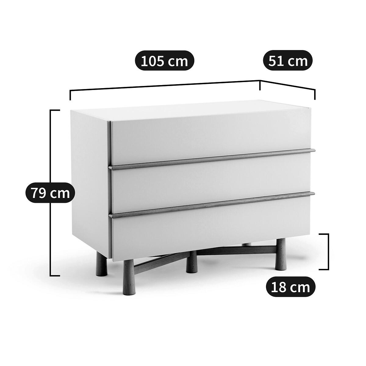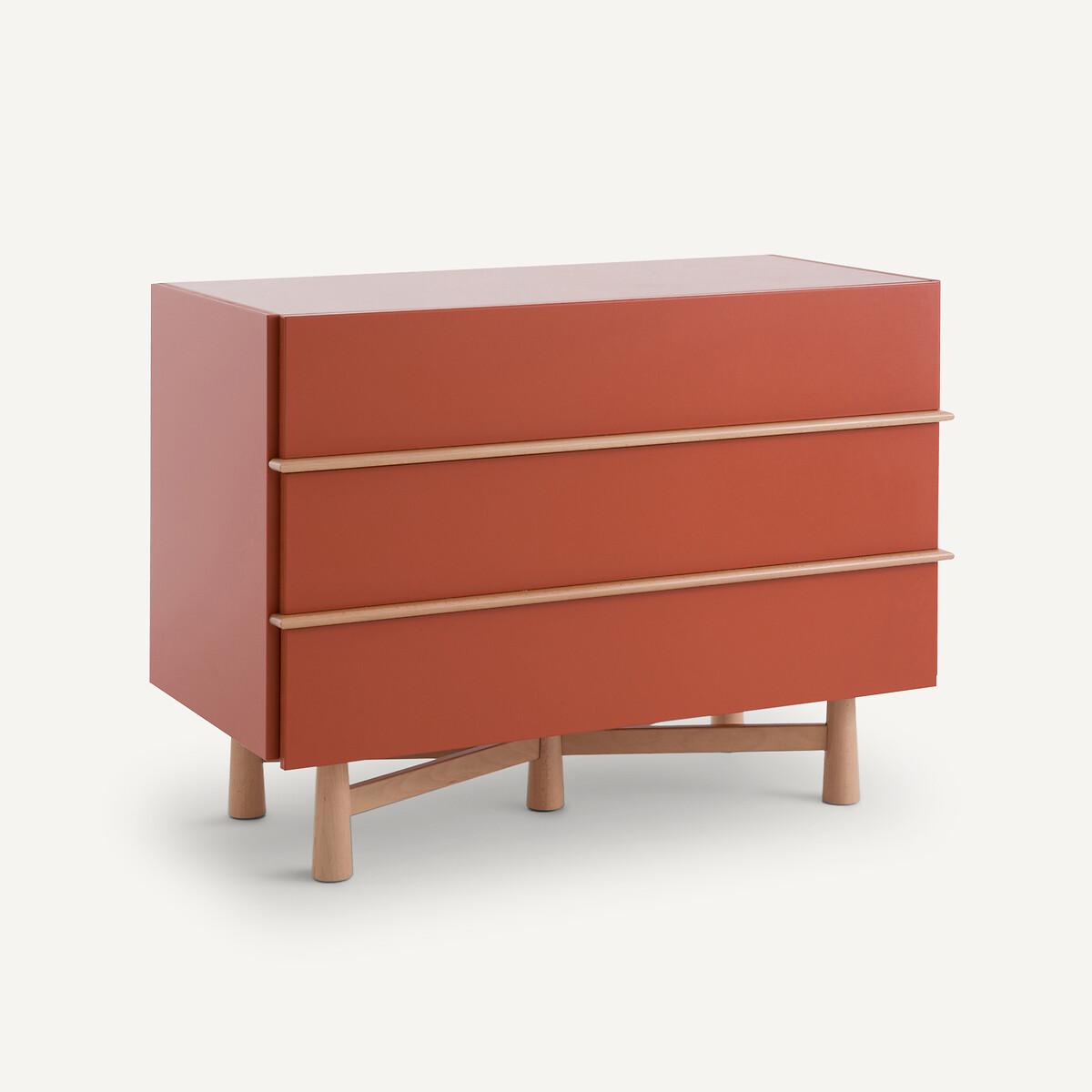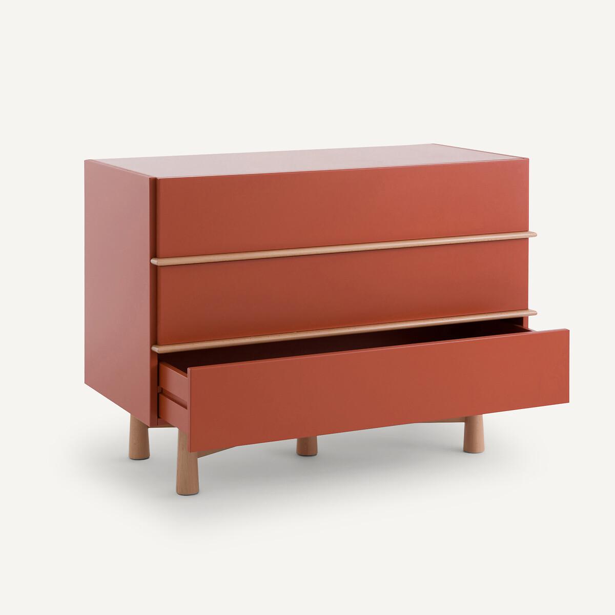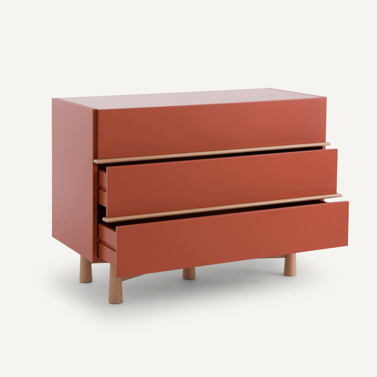 A perfect synthesis of Scandinavian and Japanese design, this lacquered chest of drawers is highlighted by fine horizontal handles and a solid beech base. Japoto is ideal in a child's or teenager's bedroom. Behind its three smooth drawers, pleasant to handle, Japoto offers a large storage space. A contemporary exclusive by AMPM.Product Details • MDF cabinet and drawers with matte lacquered fronts, in a choice of 2 colours, water-based paint. • 5-legged base and horizontal handles, in solid beech. Quality Info • Wood is a living material. The differences in shades, grains and knots reinforce its character and authenticity.. Dimensions Overall • Width: 105cm • Height: 79cm • Depth: 51cm • Base height: 18cm. Usable space • Each of the 3 drawers: L97 x H11.5 x D43cm Delivery:Sold pre-assembled. Available for home delivery. Note! Please check that all access points are large enough to accommodate your delivery (doors, stairs, lifts). • Made in Europe. • WOOD FROM SUSTAINABLY MANAGED FORESTS. FSC® certified wood comes from forests that are environmentally, socially and economically well managed. Dimensions and weight of parcel • 1 parcel • L115 x D58 x H85.5cm, 69.58kg.