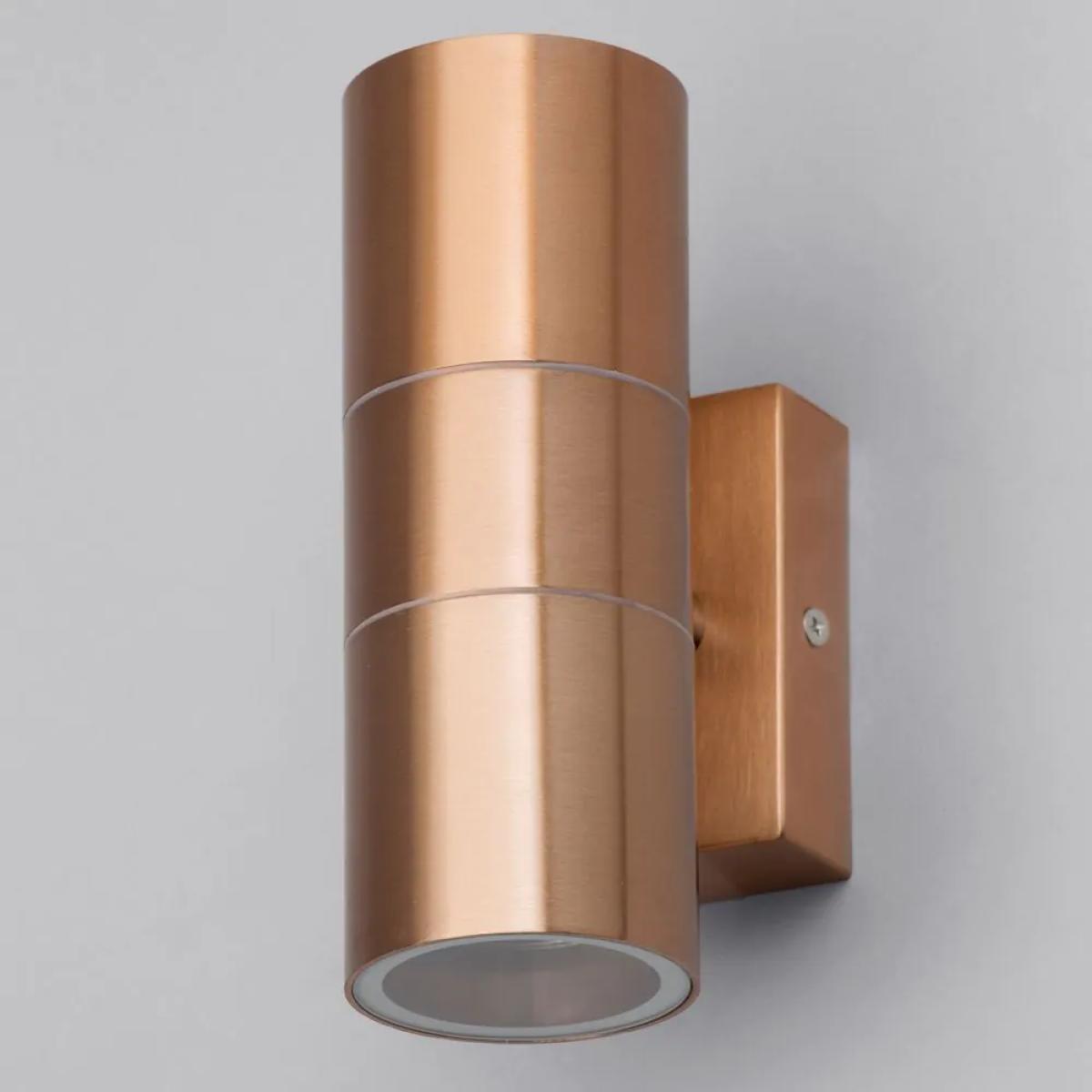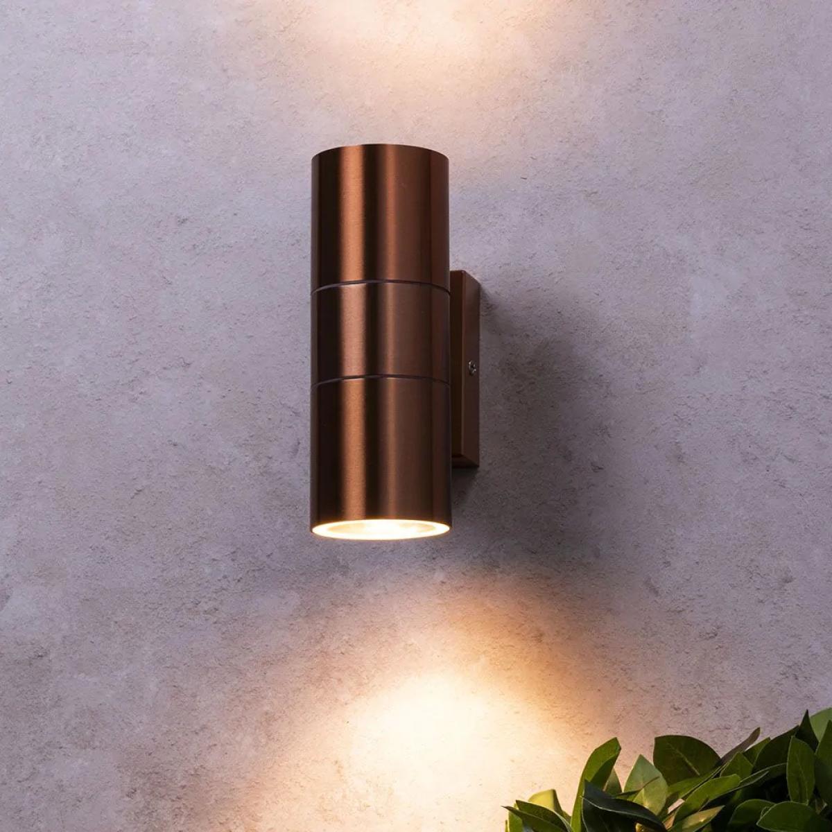 I love this wall light for its modern yet timeless appeal, thanks to its sleek copper finish and contemporary cylindrical shape. It works well in minimalist exteriors, urban gardens, or even country homes that want a touch of industrial chic. Practical styling tips include pairing it with other warm metal accessories or matte textures to create a cohesive look. It’s perfect for highlighting entrance features, illuminating steps, or casting ambient light on patio walls. To keep the style feeling fresh, consider installing it at different heights or mixing with other outdoor lighting styles for visual interest.
