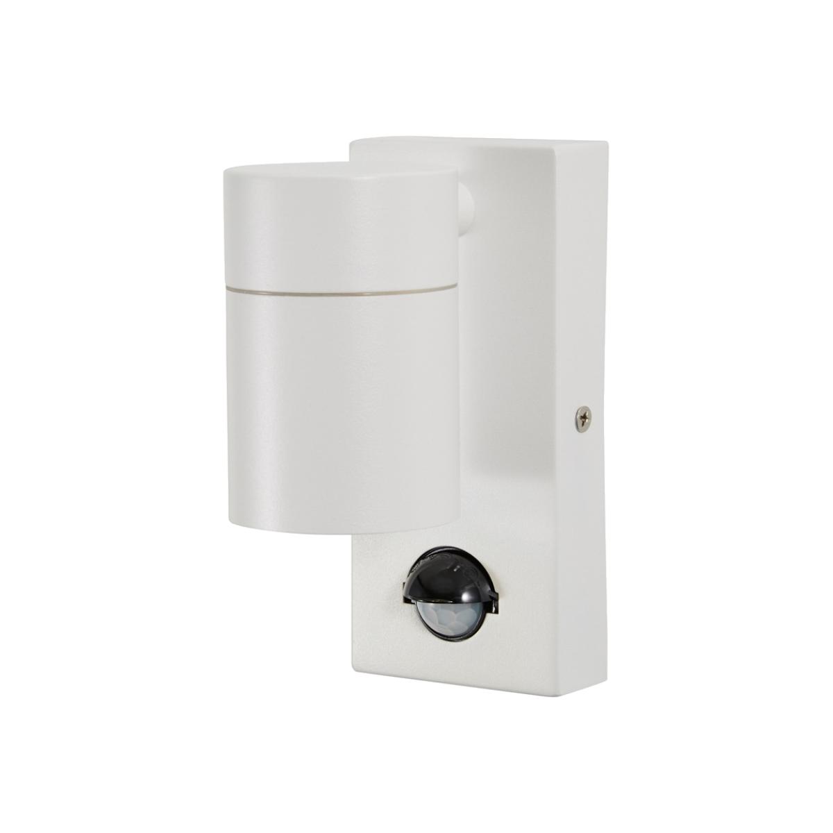 Get a sleek aesthetic for the outside of your home with the Jared Outdoor Up or Down Wall Light with PIR Sensor. This outdoor light comes in a crisp white finish that blends seamlessly with white walls and doors, and has a PIR sensor for an added security feature for your outdoor spaces. It can also be styled as an up or a downlight for versatility and comes IP44 rated for water resistance against outdoor weather conditions. IP44 rating offers protection against weather conditions; White finish offers a seamless modern aesthetic; Looks ideal when styled on either side of an entryway.