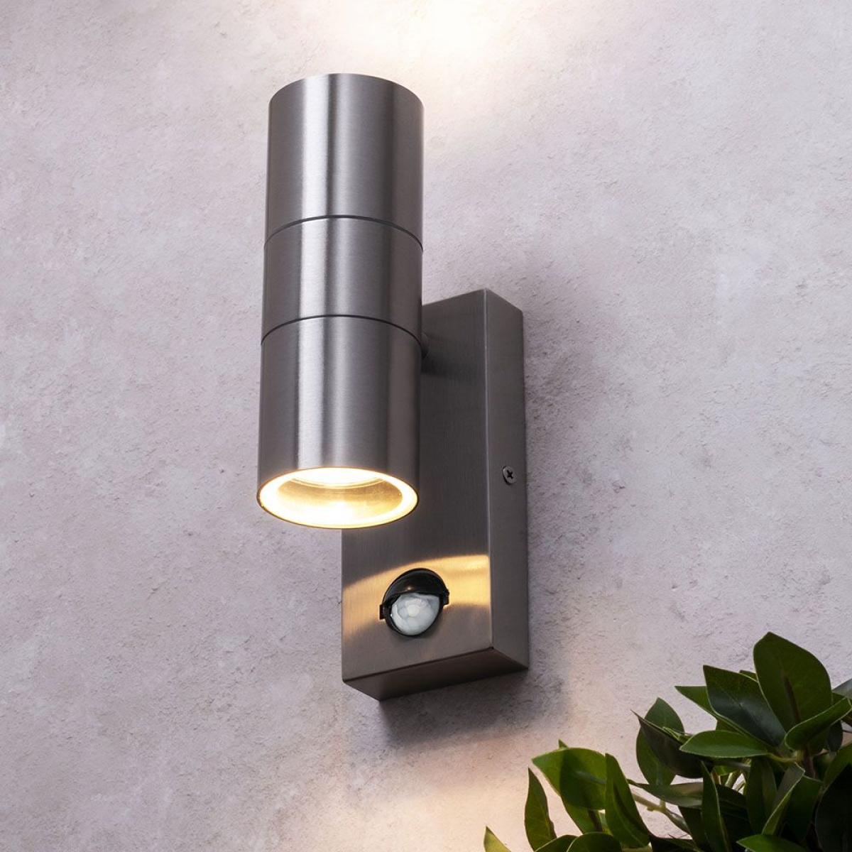 Jared Outdoor 2 Light Wall Light with PIR Sensor, Stainless Steel