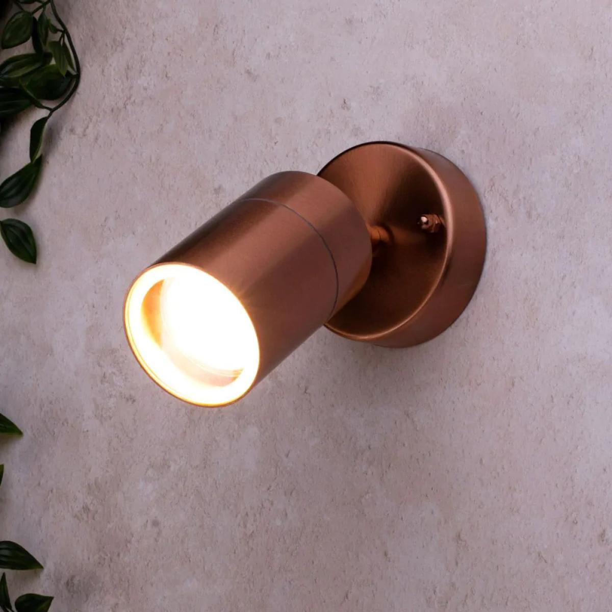 Bring a practical task light to your home with the Jared Single Adjustable Outdoor Wall Light. This outdoor light is able to be adjusted to your liking, with an adjustable head ideal for directing a practical pool of task lighting wherever you wish. The copper finish creates a vintage aesthetic among your arrangements – enhancing the natural beauty of your home’s exterior. This IP44 rated fitting is perfect for bringing an extra layer of security to your home, and looks stunning when paired together to accentuate any garden feature.