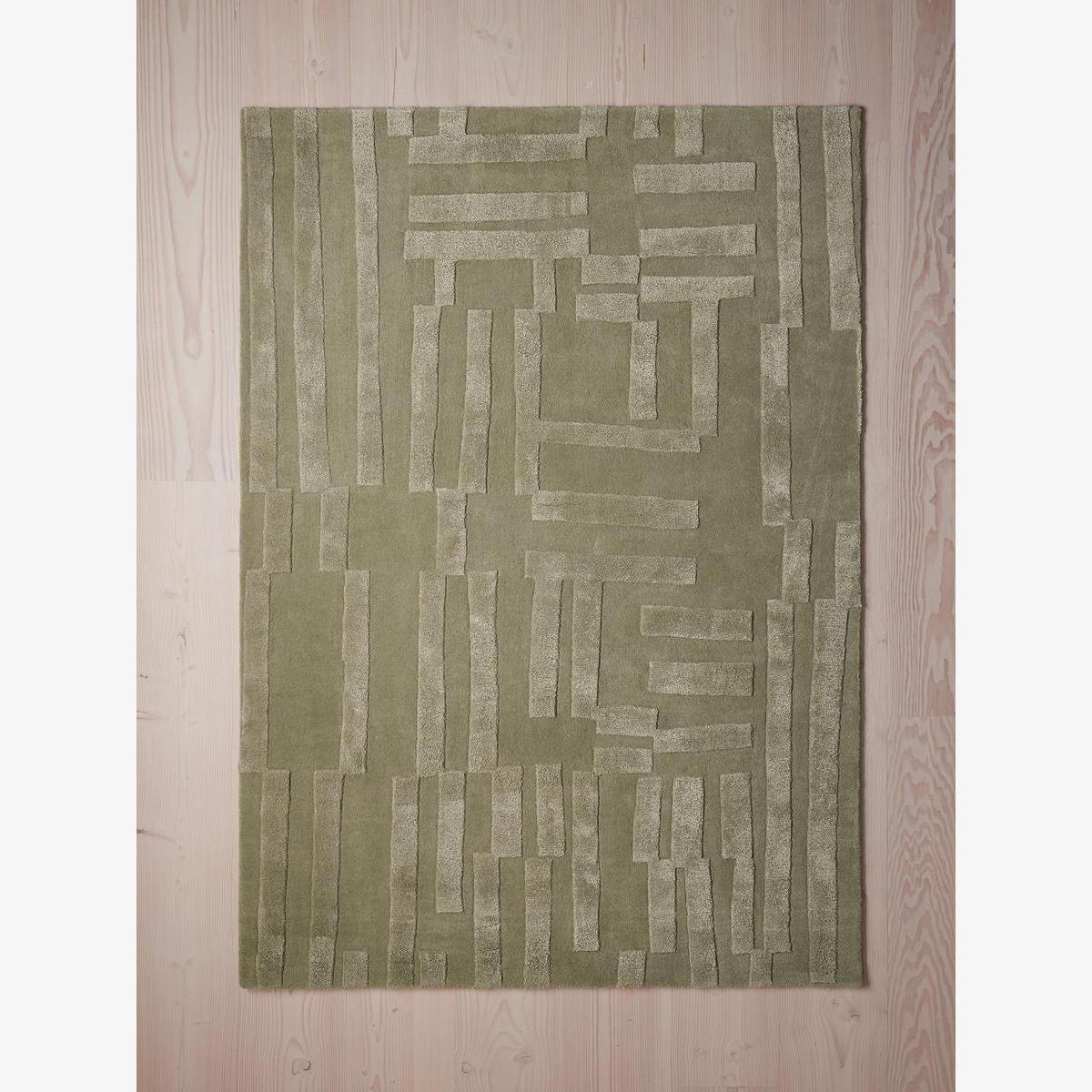I love this rug for its versatile and contemporary design, which easily complements both minimalist and more eclectic interiors. Its muted sage tone offers a calming influence and works well with natural materials like wood and linen, making it ideal for living rooms, bedrooms, or even home offices. For styling, consider layering it over a neutral or textured floor to add depth, and pair it with soft furnishings in complementary shades to create a cohesive look. Practical tips include placing it under a coffee table or dining set to anchor the space, and ensuring it’s big enough to fit the furniture comfortably, which this size does perfectly. It’s a smart choice for adding texture and warmth without overwhelming the room’s aesthetic.