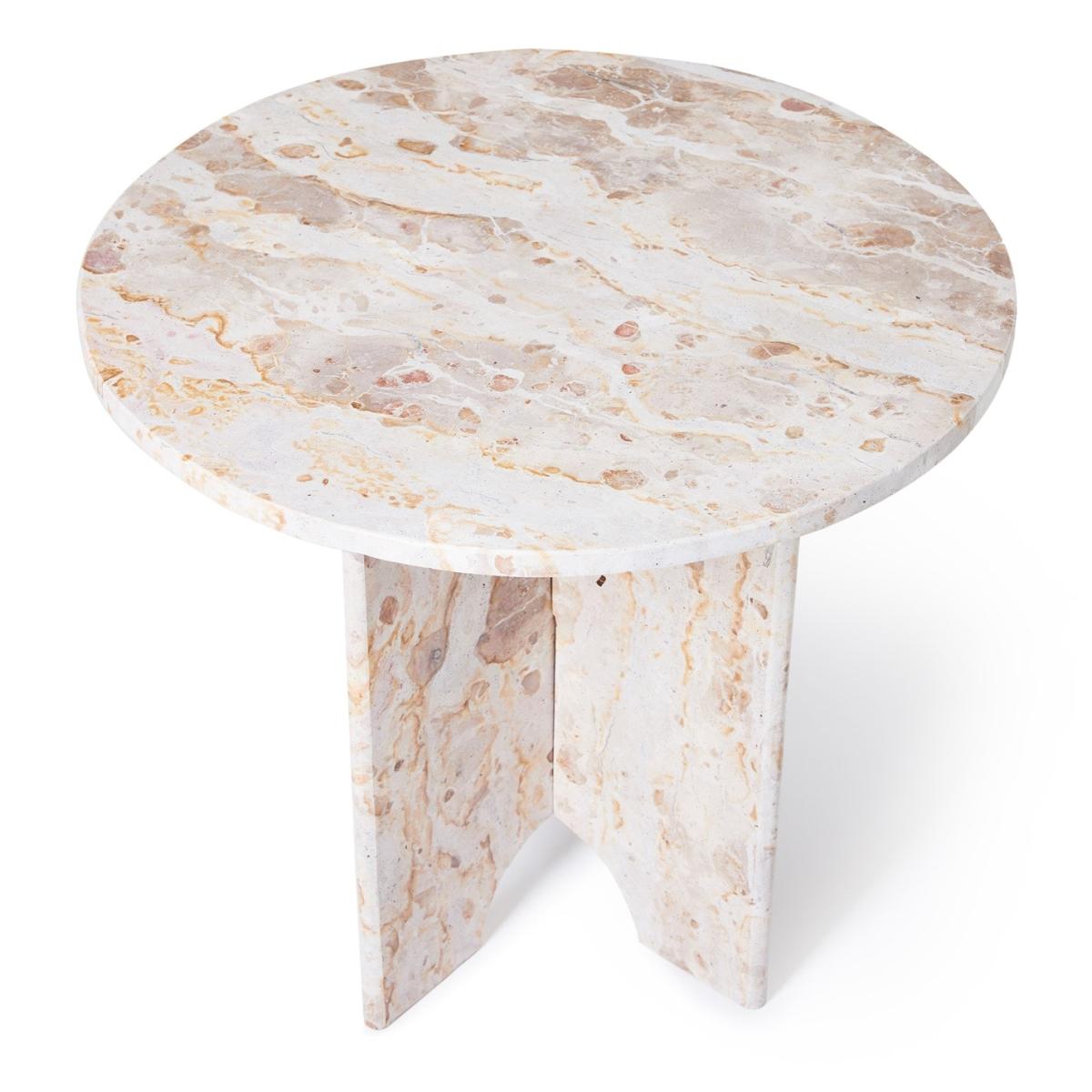 I really like this side table’s clean, sculptural shape and its natural material. It works particularly well in modern, minimalist interiors or boho spaces where its earthy tones can be highlighted with layered textures. Its durable stone surface also makes it a practical choice for beside a sofa or bed, offering a sturdy spot for a lamp, books, or a cup of tea. For styling tips, consider adding a small plant, a stack of magazines, or decorative objects with contrasting textures to keep the look fresh and inviting. Its neutral palette makes it highly versatile, so it’s easy to adapt into various colour schemes or design styles.