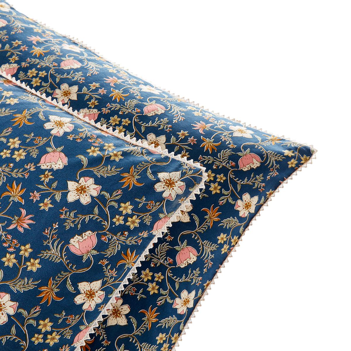 Romantic and refined: Jasmine bed linen is adorned with a floral pattern inspired by Indian fabrics, highlighted with a rickrack ribbon. Perfect for creating a bohemian atmosphere in a child's room. Cotton is part of our daily lives. We love it for its suppleness and softness. Easy Care, it is ideal for the beds of young and old alike!Product Details • 100% cotton • 144 thread count • Contains 30% recycled cotton • Double-sided Indian flower print • Croquet ribbon trim. Match this item with the rest of the bedding in the range for a stylish bedroom. And you can mix and match it with different colours and styles from our other bedding ranges when you want to change things up and create your own unique look.. Care Advice • Machine washable at 60°C • By washing your laundry at 40°C instead of 60°C, you limit energy consumption. Dimensions • 50 x 70cm: Rectangular pillowcase • 63 x 63cm: Square pillowcase • Recycled cotton. Using recycled cotton is all about conserving resources and reducing waste. • OEKO-TEX® Standard 100. Standard 100 certification by OEKO-TEX® tests textile products for harmful substances via an independent, international label.