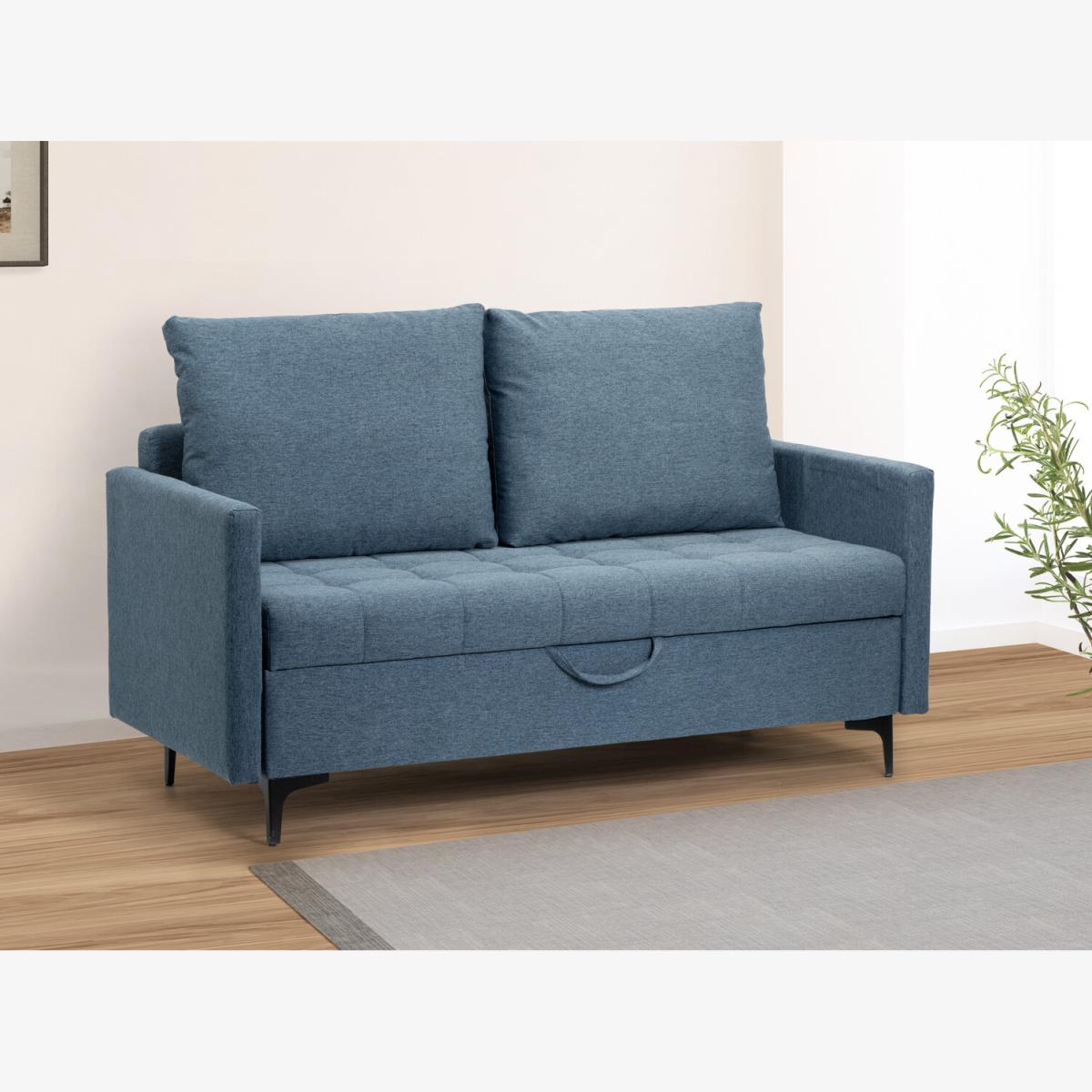 The Jasmine Two Seater Sofa with Storage has a beautiful blue linen finish with sleek black legs to add a modern touch to your home. The sofa can be used to give you more seating and additional storage space ideal for spare blankets, cushions, or odds and ends. It opens with a simple movement for ease of use and has a contemporary design to look beautiful in any room. It's comfortable for relaxing and is finished with an attractive button detail on the seat.