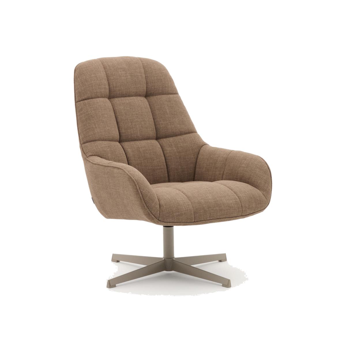 Jaspe light brown swivel armchair with grey-finished metal, FSC 100%