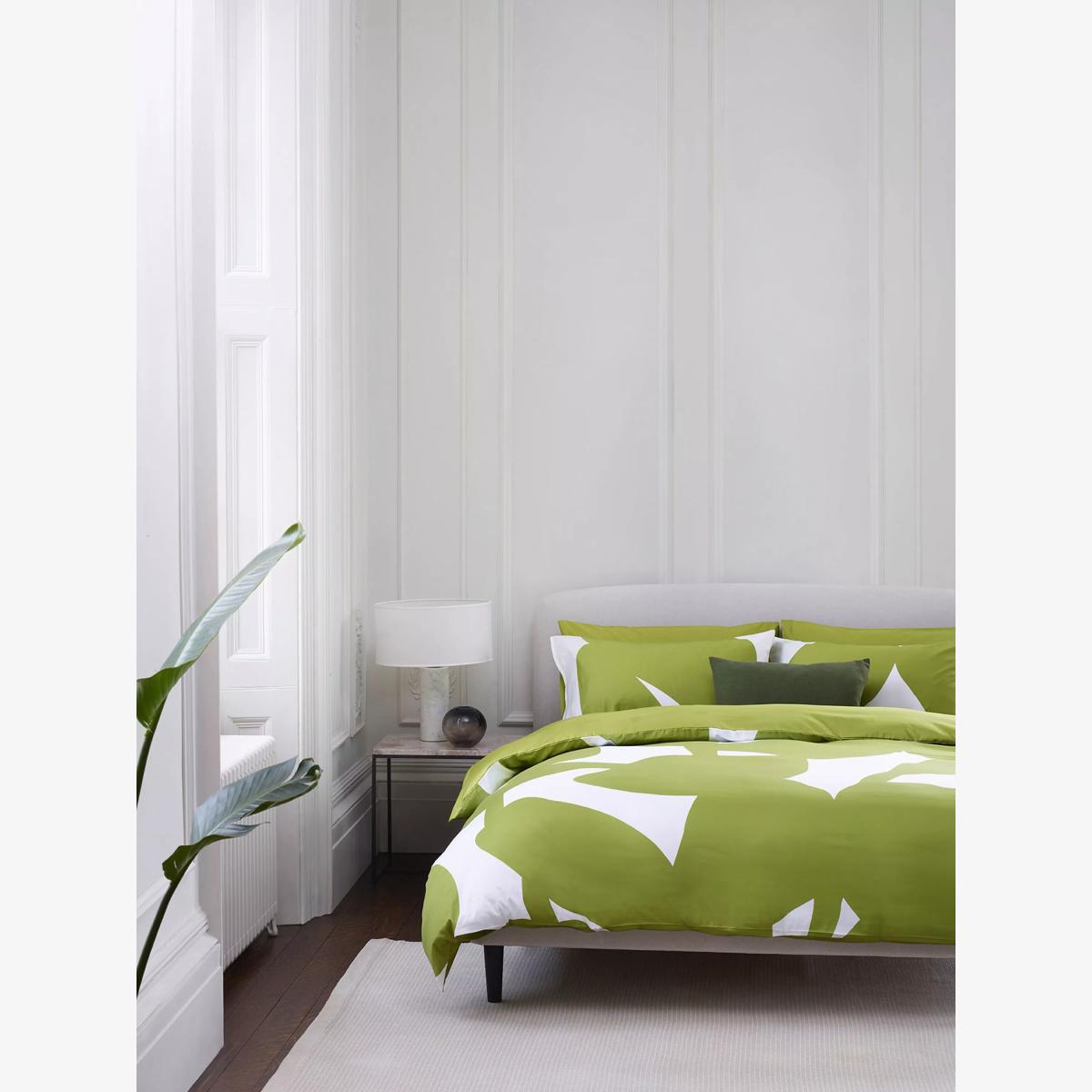 This 300 Thread Count Floral Leaf range uses 100-per-cent combed cotton, created using the finest yarns. These durable fabrics feel beautifully soft and are breathable and naturally hypoallergenic, making them suitable for use all year round. This unique satin weave uses a process of four over, one under to maximise the number of threads visible on the upper side of the fabric. The result is a medium-weight fabric with rich satin softness. Part of the contemporary print collection, Floral Leaf Print is a unique, large-scale printed design specially created to make a bold and colourful statement in your bedroom, and with a single, complementary colour on the reverse. The range is available in duvet cover sets and as separate standard pillowcase pairs. Standard pillowcase, L75 x W50cm Double duvet cover, L200 x W200cm King duvet cover, L220 x W225cm Super king duvet cover, L220 x W260cm