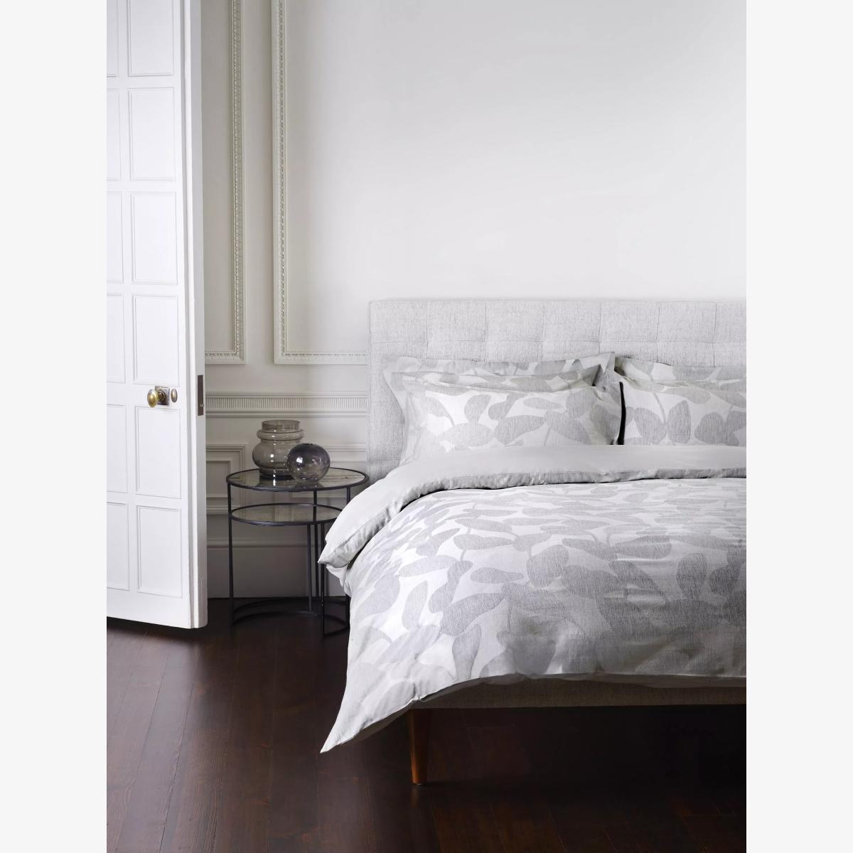 This Abstract Leaf Jacquard range uses 100% combed cotton, created using the finest yarns. These durable fabrics feel beautifully soft and are breathable and naturally hypoallergenic, making them suitable for use all year round. The jacquard loom is programmed to raise each warp thread independently during the weaving process, creating stunning, complex patterns for a truly bespoke set of fabrics. Abstract Leaf Jacquard range features woven scattered leaves creating subtle texture and tone to your bedroom. The range is available in duvet cover sets with standard pillowcases and as separate, individual Oxford pillowcases. Bedding sizes To fit duvet/pillow size (cm) Oxford pillowcase, L75 x W50cm (plus frill) Double duvet cover, L200 x W200cm King duvet cover, L220 x W225cm Super king duvet cover, L220 x W260cm
