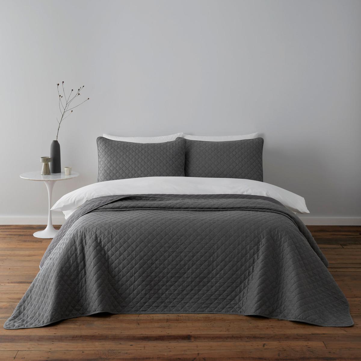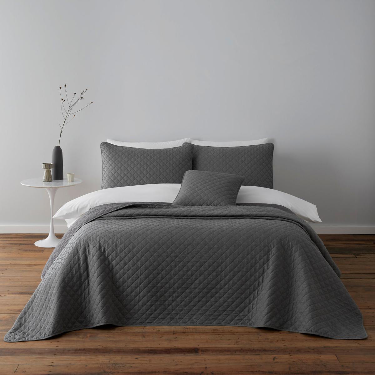 This decorative pillow sham features a woven quilted design in dark grey and has a removable machine washable cover.