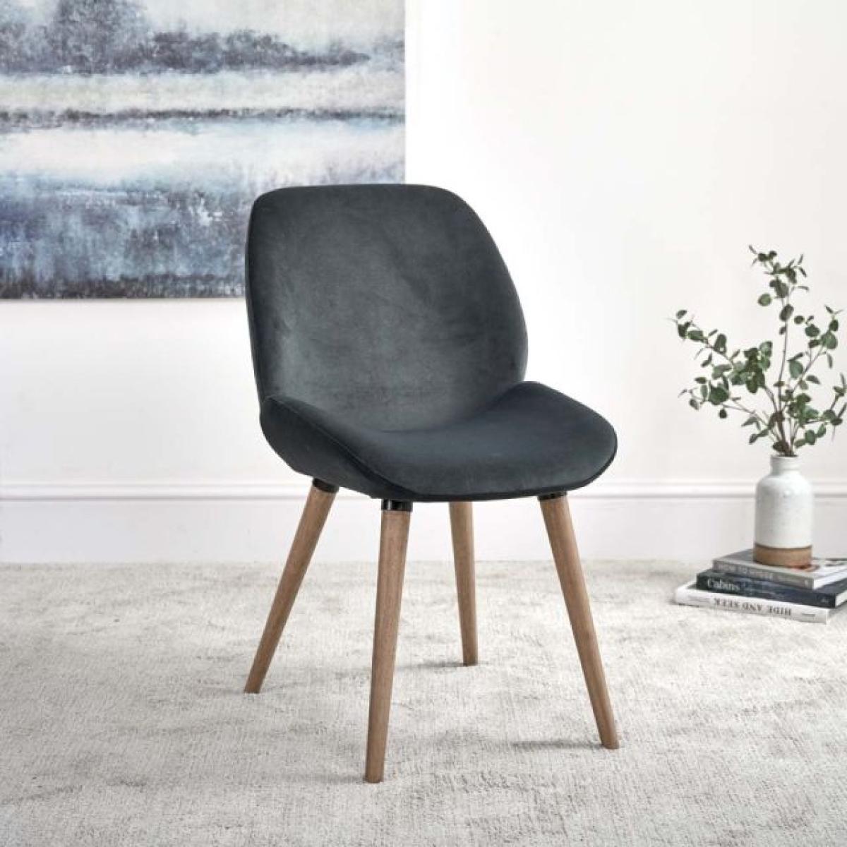 Jasper grey velvet dining chairs bring a luxurious touch to dining. Dressed in a soft velvet and supported by sturdy wooden legs, the Jasper grey velvet dining chairs gently contoured design has a deep scoop on the seat and back providing great comfort while dining. Add a luxurious touch to your dining room with grey velvet dining chairs. Click today to add this piece to your collection. Dimensions: H86cm x W51 x D54cm Seat Height 48cm Velvet upholstery. Sold individually not a pair. Simple self assembly