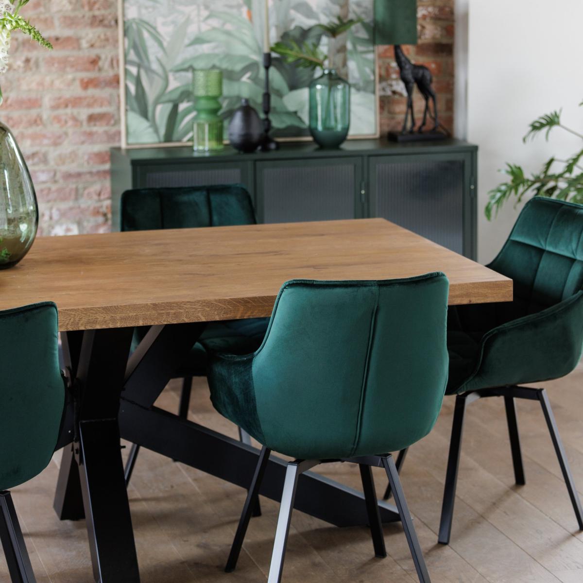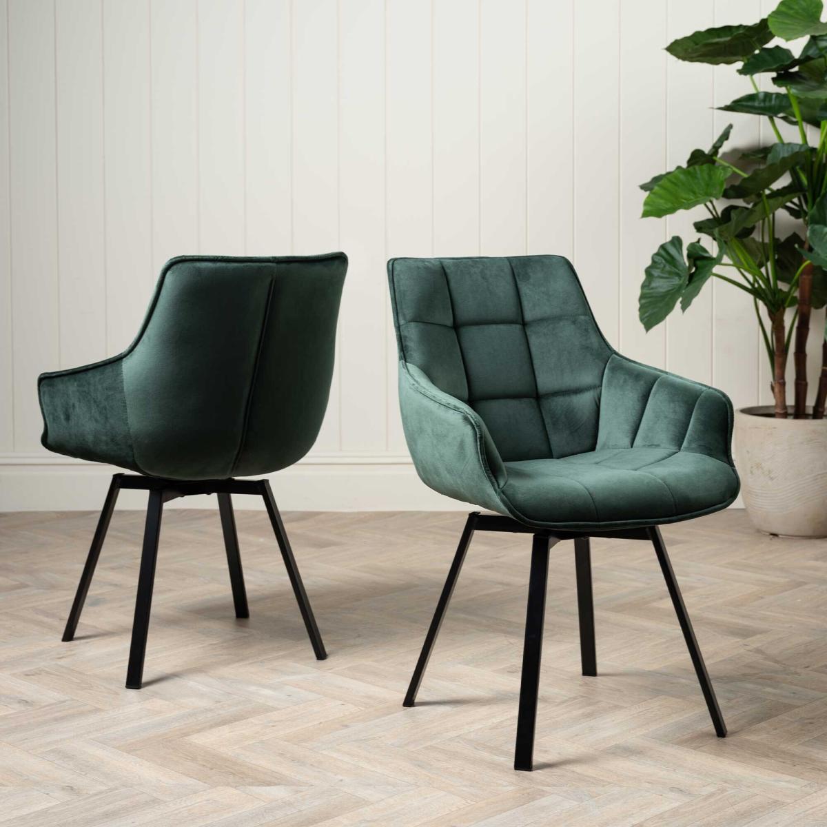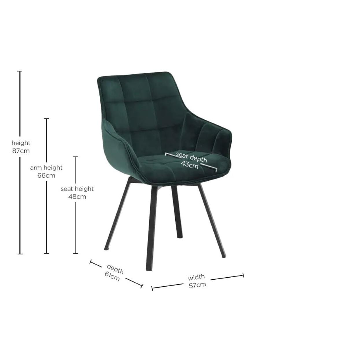 The Jasper dining chair combines exquisite design with exceptional comfort. Its unique cocooning shape, quilted velvet upholstery, and plush foam cushioning create a luxurious seating experience. The rich green finish complements various color schemes, while contemporary black metal legs add a touch of sophistication. With a practical swivel seat for seamless socialising and a fixed foam seat cushion ensures consistent support over time. The Jasper dining chair combines exquisite design with exceptional comfort. Its unique cocooning shape, quilted velvet upholstery, and plush foam cushioning create a luxurious seating experience. The rich green finish complements various color schemes, while contemporary black metal legs add a touch of sophistication. With a practical swivel seat for seamless socializing, this elegant yet edgy chair is sure to beautify any dining room. The fixed foam seat cushion ensures consistent support over time.