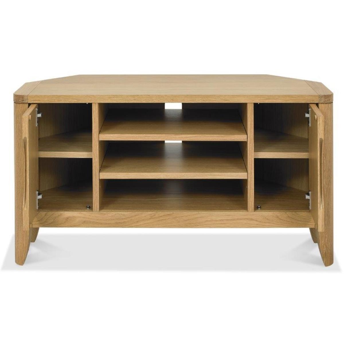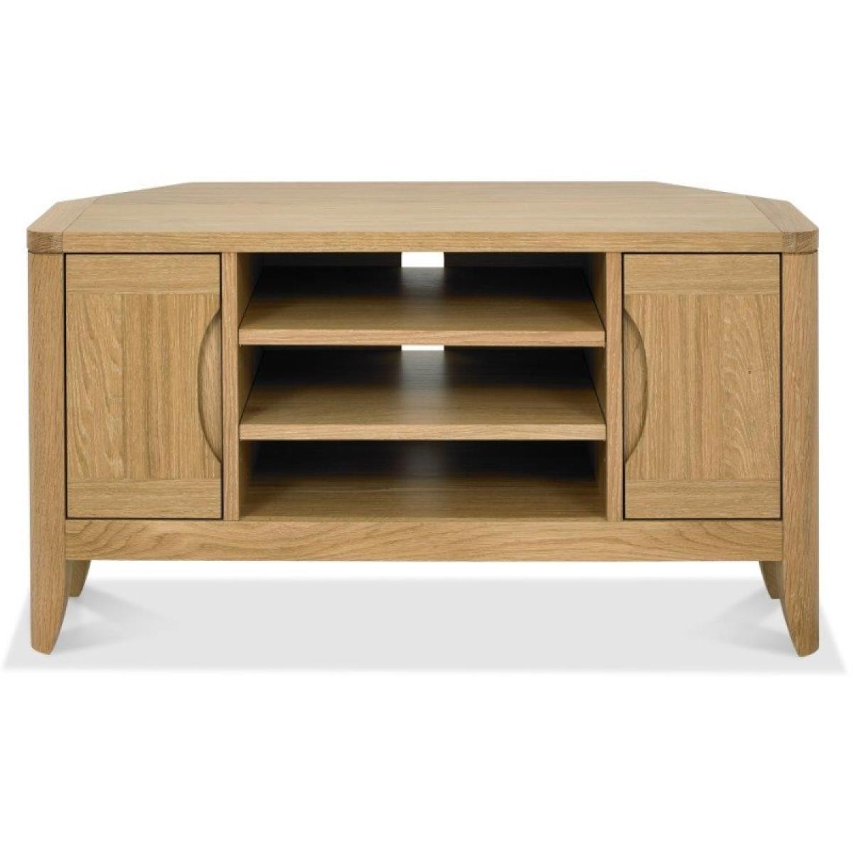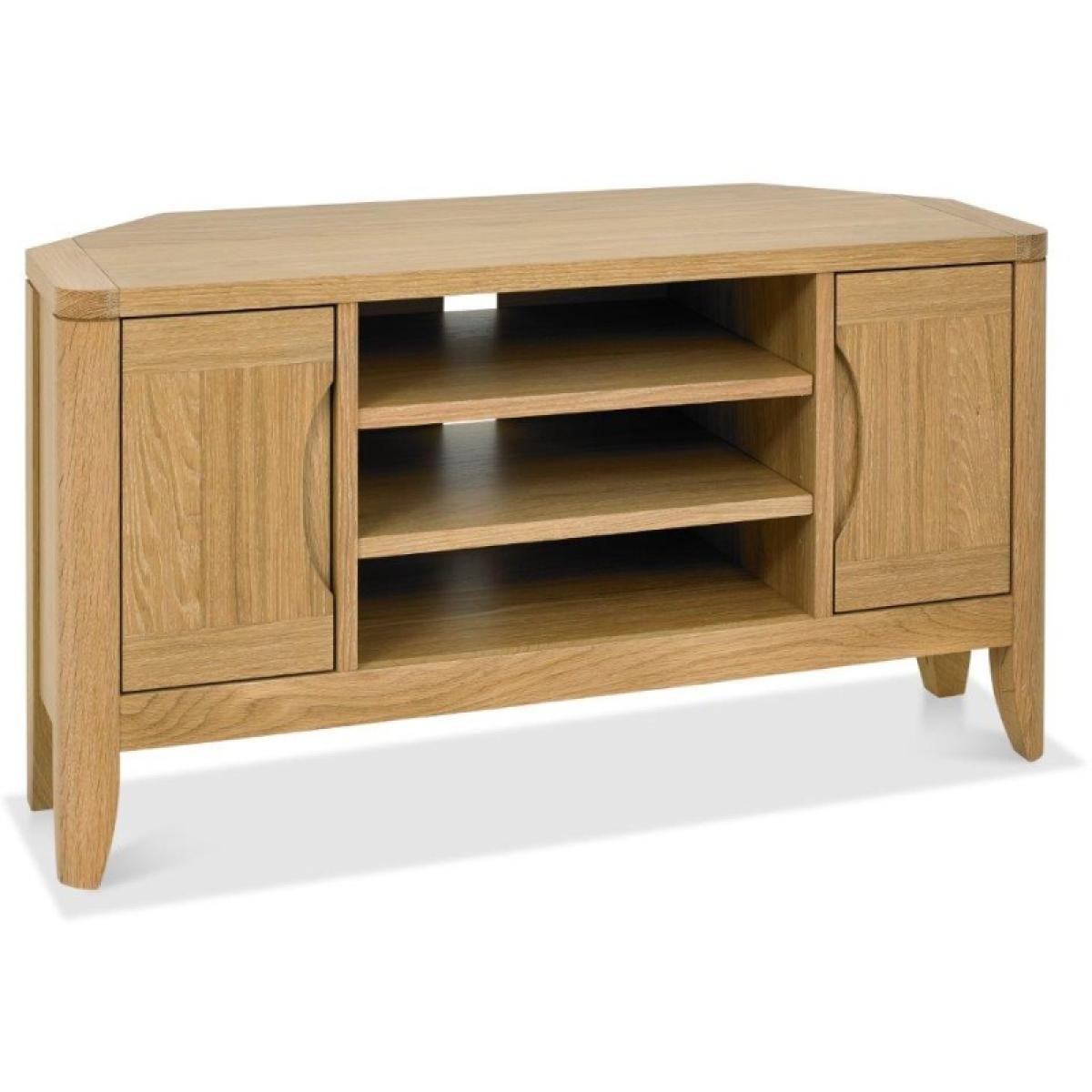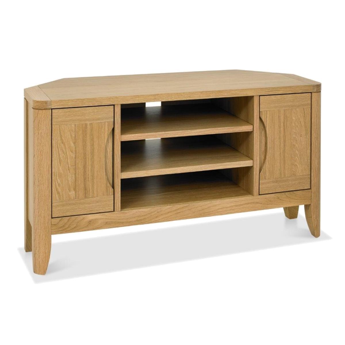 Subtle detailing such as the unique breadboard ended cabinet and table tops and soft, rounded corners define the effortlessly elegant look of this collection, seamlessly transforming both modern and more traditionally decorated interiors with equal charm. This Jasper Corner Entertainment Unit offers a variety of practical features including built-in shelving, integral recessed handles and smooth soft-close drawers. Partial assembly required. Features: Soft-close drawers Oak finish Timeless style 2 Year Guarantee Matching pieces available Corner Entertainment Unit Dimensions: Height: 53cm Width: 100cm Depth: 39cm Please note: All screens vary in colour reproduction and whilst every effort has been made to display the colour as accurately as possible it is for guidance only.