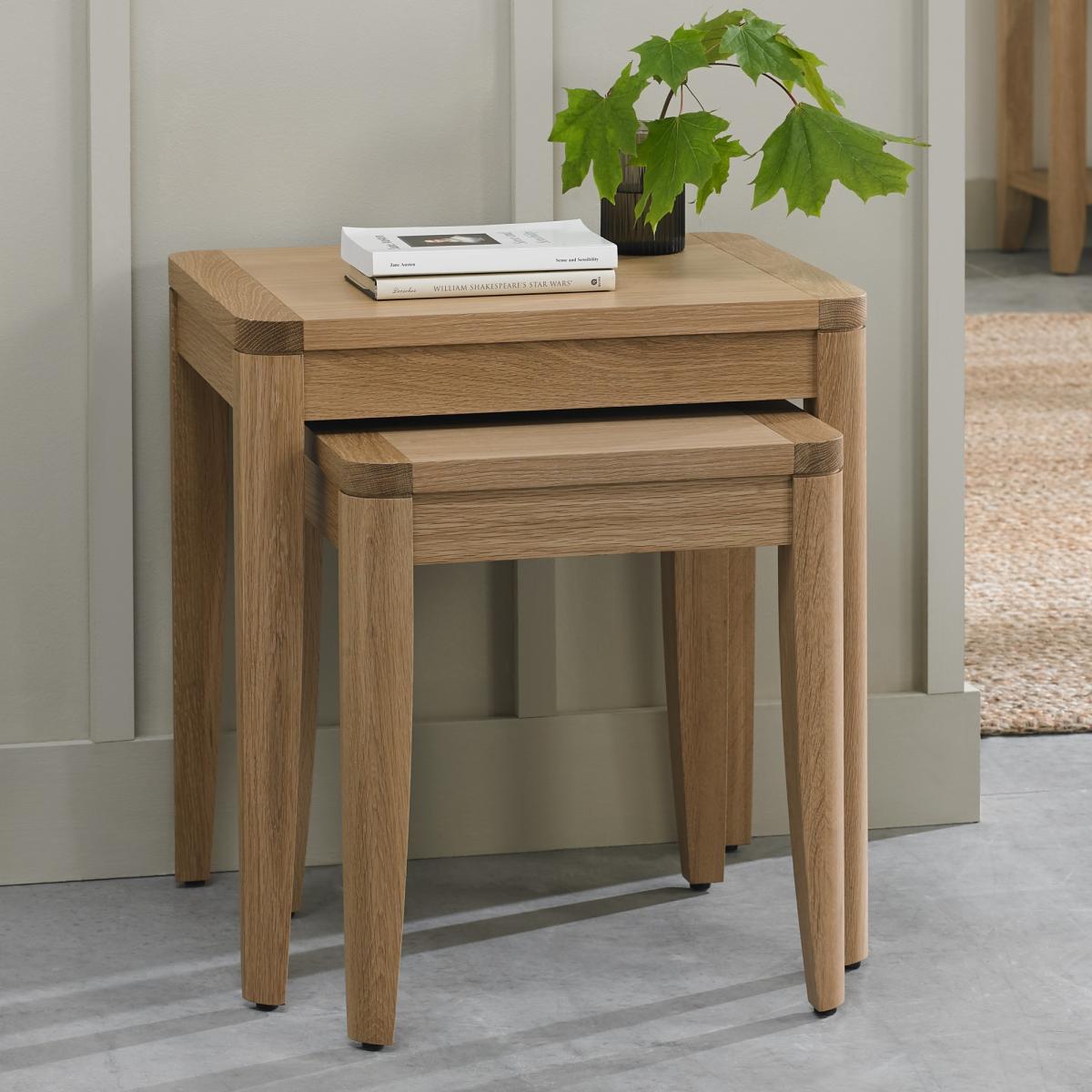 I’m a fan of these oak nest tables for their simplicity and flexibility. Their clean lines and light oak finish sit comfortably in Scandi, Japandi or modern farmhouse schemes, and the smaller table tucks away neatly when you need more floor space. Styling-wise, try layering them beside a sofa or bed - the lower table makes a handy spot for magazines or a plant, while the taller one can hold a lamp or your morning coffee. Their neutral tone also means you can switch up soft furnishings or accessories without worrying about clashing.