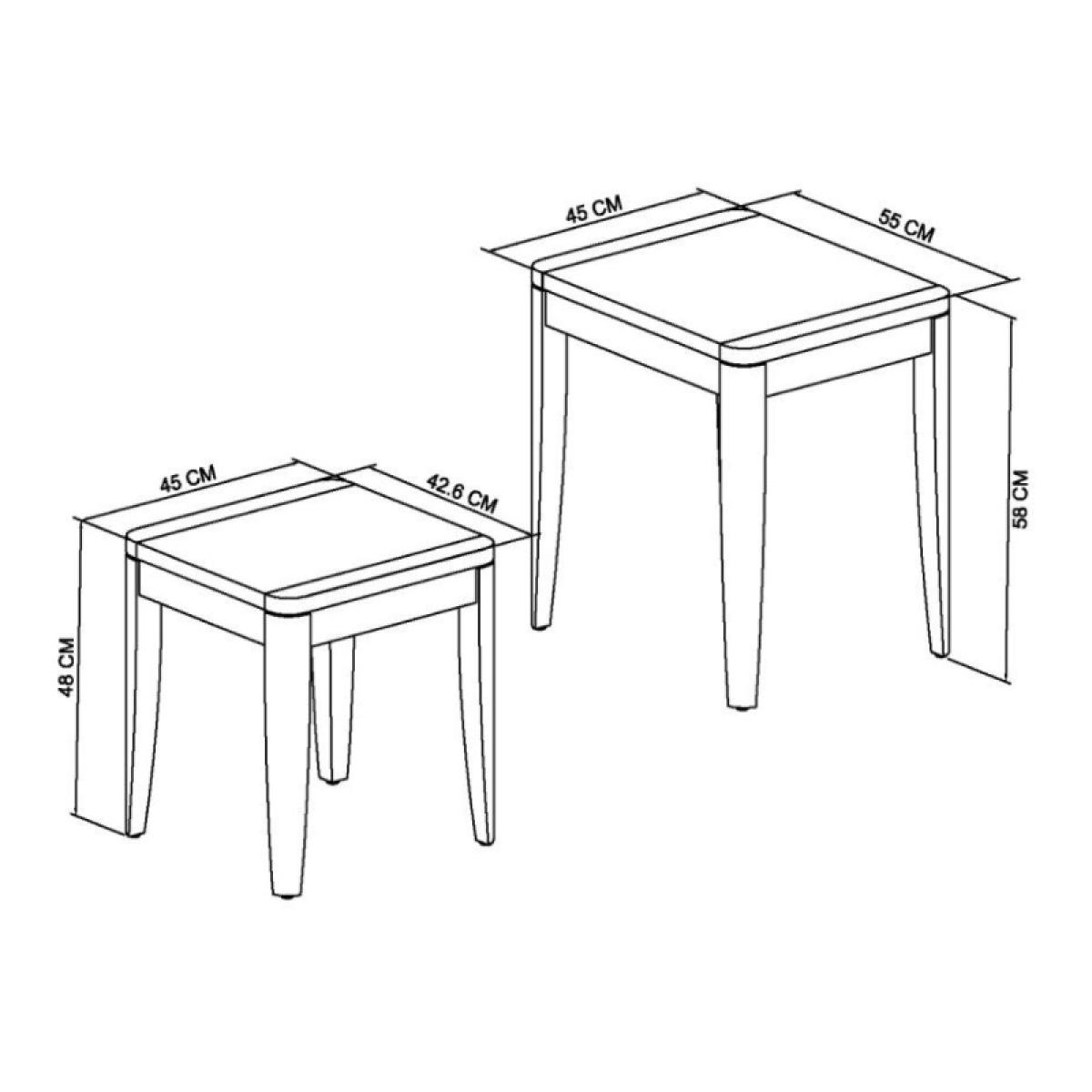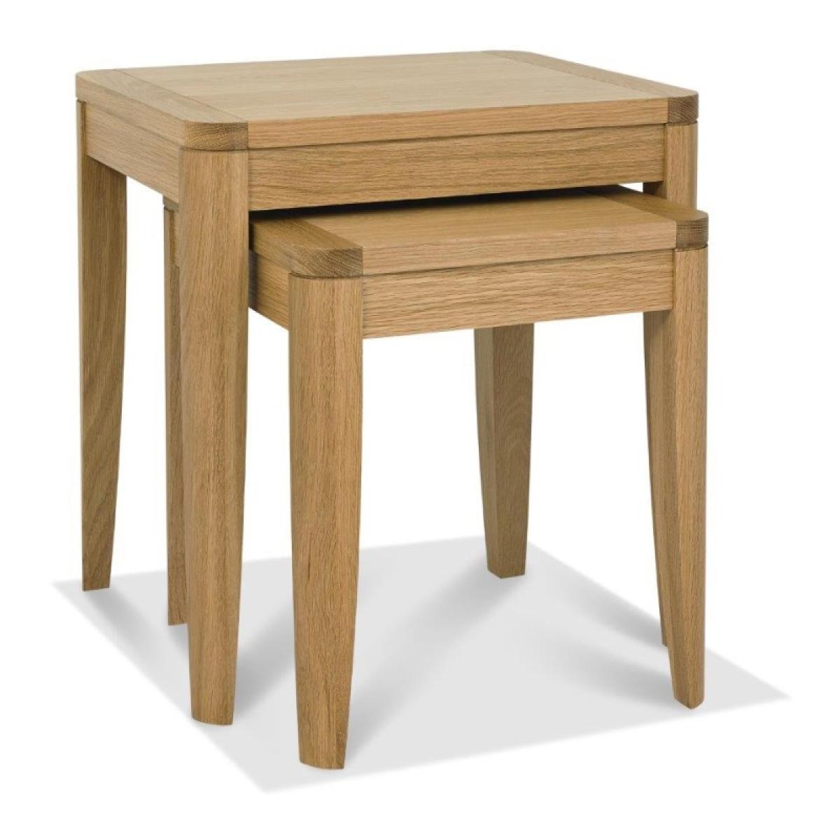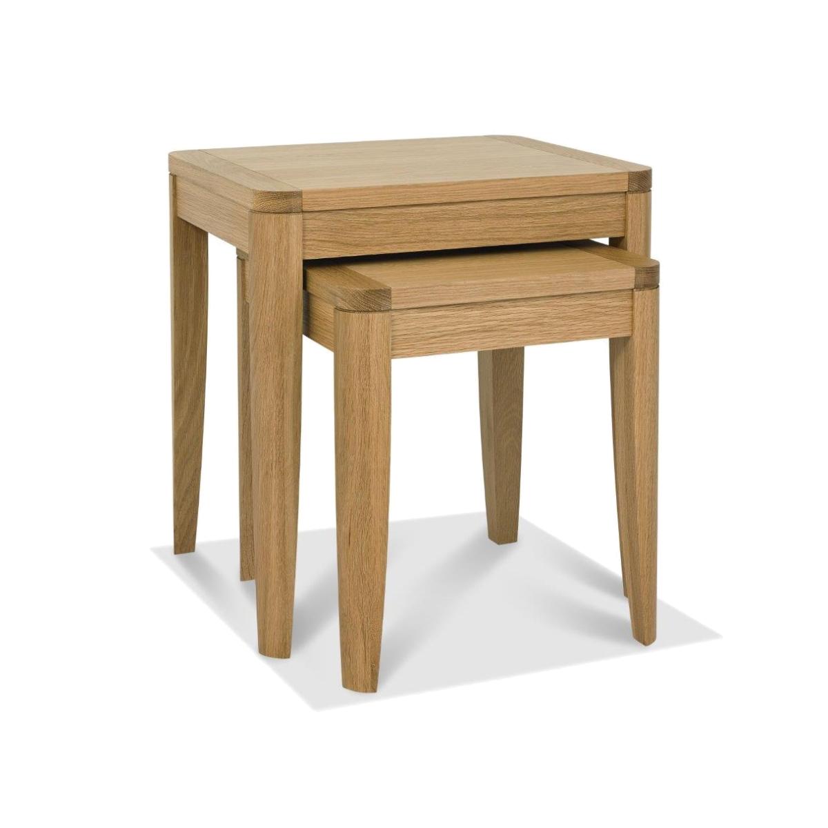 With timeless styling and wide appeal the Jasper dining range is crafted using premium American oak solids and veneers and finished with a hard-wearing clear lacquer, accentuating its clean lines and versatility. With its practical features, attention to detail, and elegant design, this range is sure to impress and delight for years to come. Assembly required. Features: Oak finish Timeless style 2 Year Guarantee Matching pieces available Nest of Tables Dimensions: Height: 58cm Width: 55cm Depth: 45cm Please note: All screens vary in colour reproduction and whilst every effort has been made to display the colour as accurately as possible it is for guidance only.
