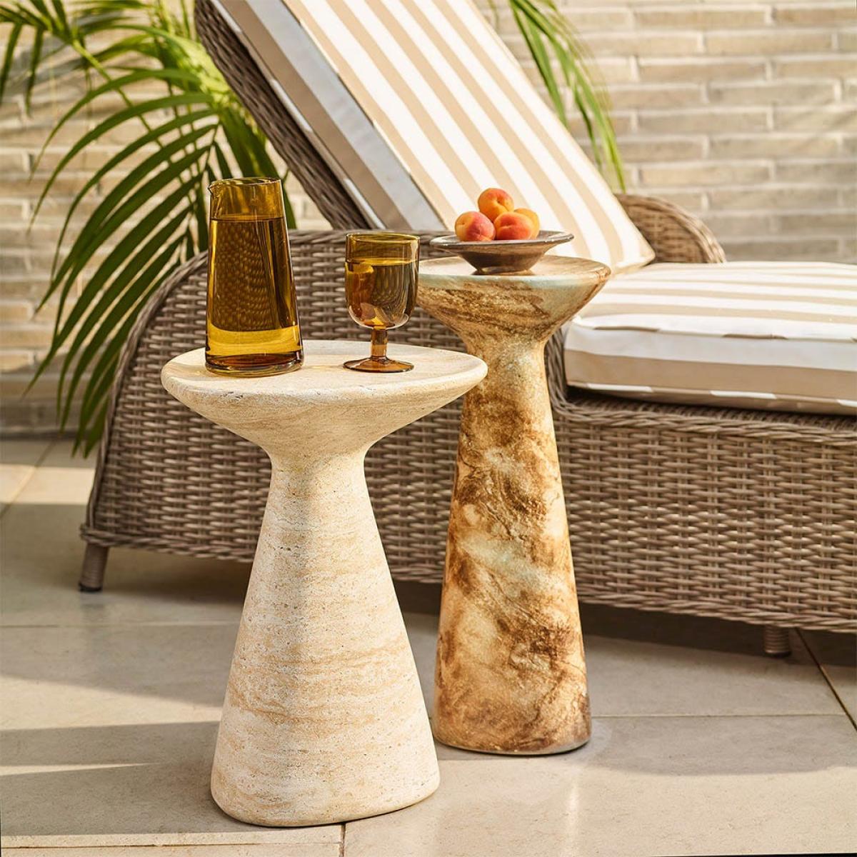 Whether for your morning coffee or evening cocktail, this side table in mottled brown and beige marble-effect concrete is the perfect perch for your mug or glass. The slimline silhouette of Jasper is elegant and compact so you can make a statement whether you chose to position it on your patio, or in your living room. With its soft lines and organic curves it looks at home in any contemporary indoor or garden scheme. This side table innovatively produced using concrete with a marble-finish effect to create the illusion of a hand carved solid stone table for an elegant and solid design at an affordable price.
