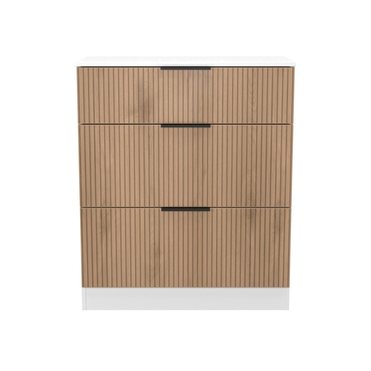 This deep 3 drawer chest of drawers is practical and stylish. Perfect for any home as a free standing storage unit. A strinking new range with a eye catching Slat Effect patten on the fronts or the doors and drawers, as well as sleek black metal handles. Modern and striking this range will stand out in any modern home. All our furniture is made in the United Kingdom, to the highest quality using responsibly sourced materials. It is delivered direct to your location of choice by one of our two man delivery teams, and comes fully assembled (although items with legs will have those legs removed during transit to avoid damage).
