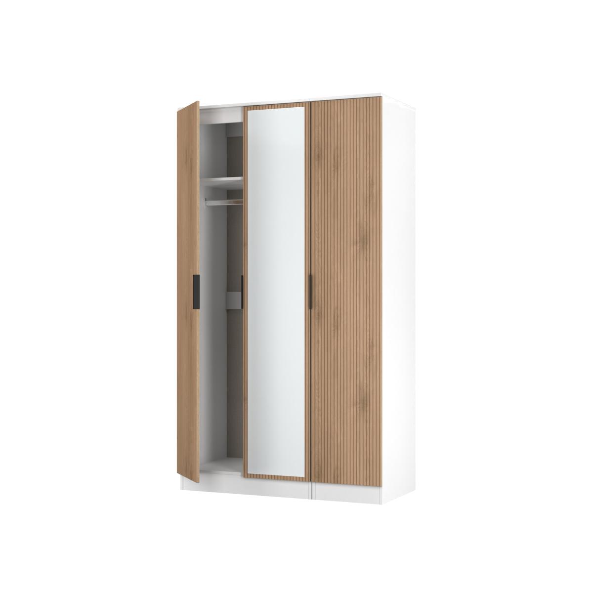 This tall triple 3 door wardrobeis perfect for any bedroom when a normal wardrobe is just not large enough. Also features a full height single mirrored door. A strinking new range with a eye catching Slat Effect patten on the fronts or the doors and drawers, as well as sleek black metal handles. Modern and striking this range will stand out in any modern home. All our furniture is made in the United Kingdom, to the highest quality using responsibly sourced materials. It is delivered direct to your location of choice by one of our two man delivery teams, and comes fully assembled (although items with legs will have those legs removed during transit to avoid damage).