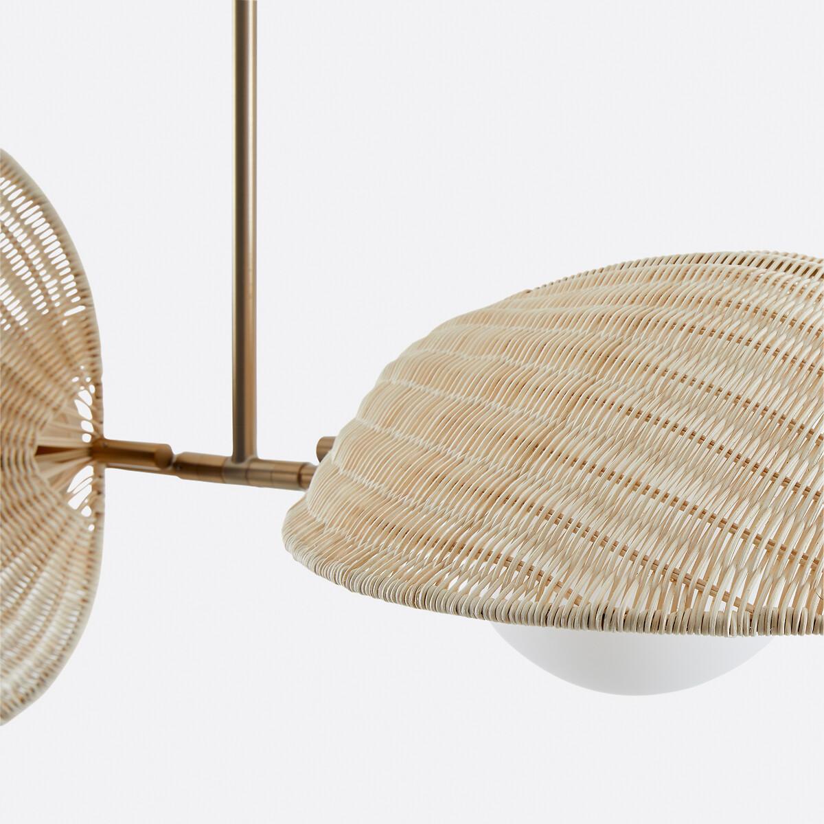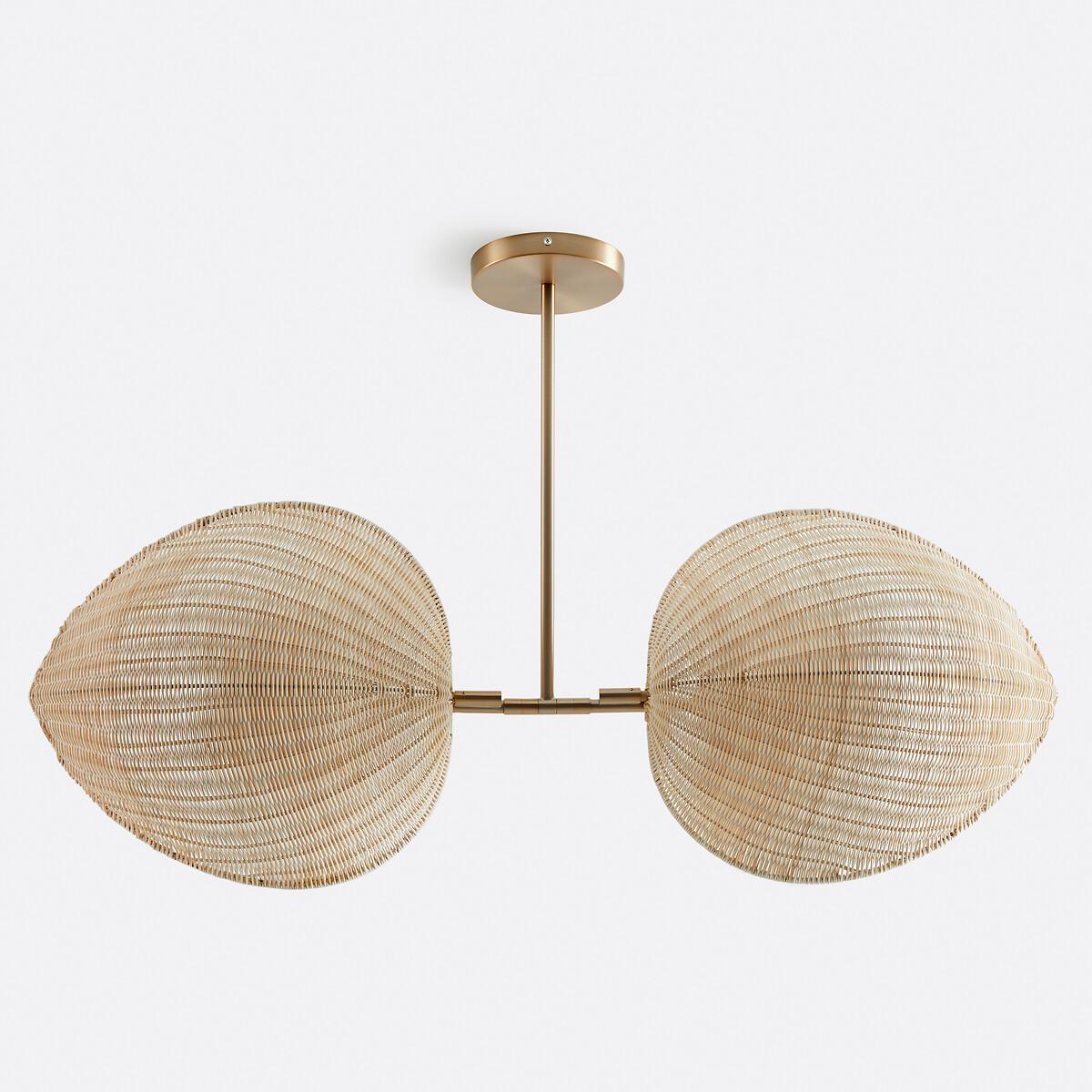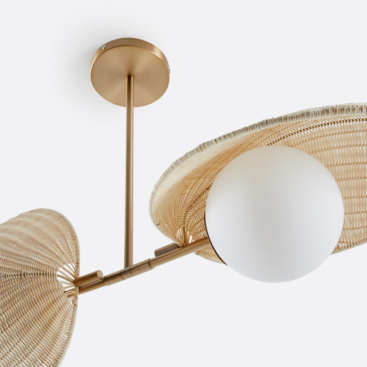 Javana Double Opaline Ceiling Light in Rattan/Brass