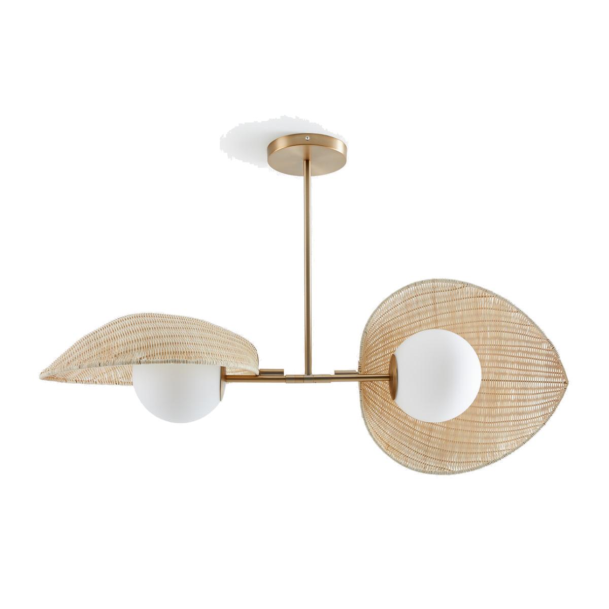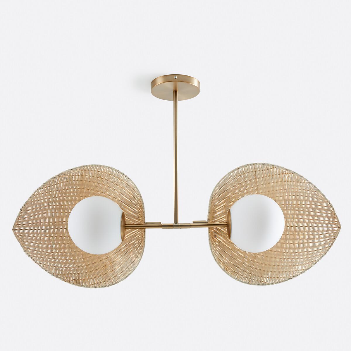 A sober, airy design. The Javana ceiling light is a real jewel of light. Its double opaline glass and rattan lampshade diffuses a soft, subdued light that creates a cosy atmosphere and enhances your décor. Created by La Redoute Interiors. Product Details • Double adjustable rattan lampshade and opaline glass globe • Brass-finish iron structure • Double E14 sockets for LED bulbs up to 8W (not supplied)Dimensions • Width: 113.5cm • Height: 70cm • Depth: 43cm. Dimensions and weight of parcels • 1 parcel • W53 x H57 x D45cm. 5.2kg.