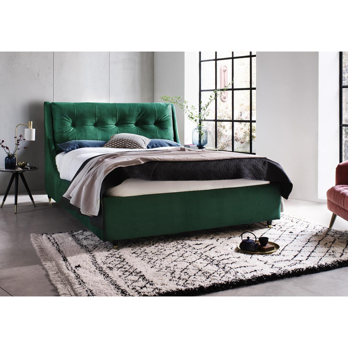 Style and comfort go hand in hand in the striking Javier ottoman bed frame. With its distinctive headboard featuring a cushioned pillow, so comfortable and supportive, this bed frame is the ideal place from which to watch a movie or enjoy a cup of tea. You’ll also appreciate the huge underbed storage space, beautiful upholstery, cool retro-inspired details – and the amazing value price. Only at Furniture Village. Contemporary ottoman bed frame. Usefully large underbed storage compartment. Great value and only at Furniture Village. More comfortable and arguably more stylish than the average bed frame, the one of a kind handcrafted Javier bed frame has a distinctive contemporary look that you’ll love – and at a very appealing price. Just take a look at the pillow back headboard, a unique design feature and one which has a very simple ulterior motive – your total comfort. The cushioned headboard, embellished with a simple row of buttoning, fits neatly and securely between the beautifully curved sides of the bed frame, and makes it easy to sit back and relax as you watch TV or read a book. Wood legs with gold-effect metal caps are a stylishly retro finishing touch. The gas-assisted lift mechanism is effortless to use, and as this bed frame is supported by three sturdy metal bars just above floor level – which gives it a stylish floating appearance – you’ll enjoy an exceptionally deep storage space with almost no storage weight limit. The Javier ottoman bed frame is offered in three beautiful upholstery fabrics and is available in double, king and super king bed sizes. Please note. The flattening and shading of heavy wear areas on pile fabrics like chenille and velvet is unavoidable. Pile fabrics may be vacuumed lightly using the curtain attachment, and brushed regularly in the direction of the pile with a soft brush. Please keep hands clear of the mechanism when opening and closing this ottoman bed frame. Mattress sold separately.
