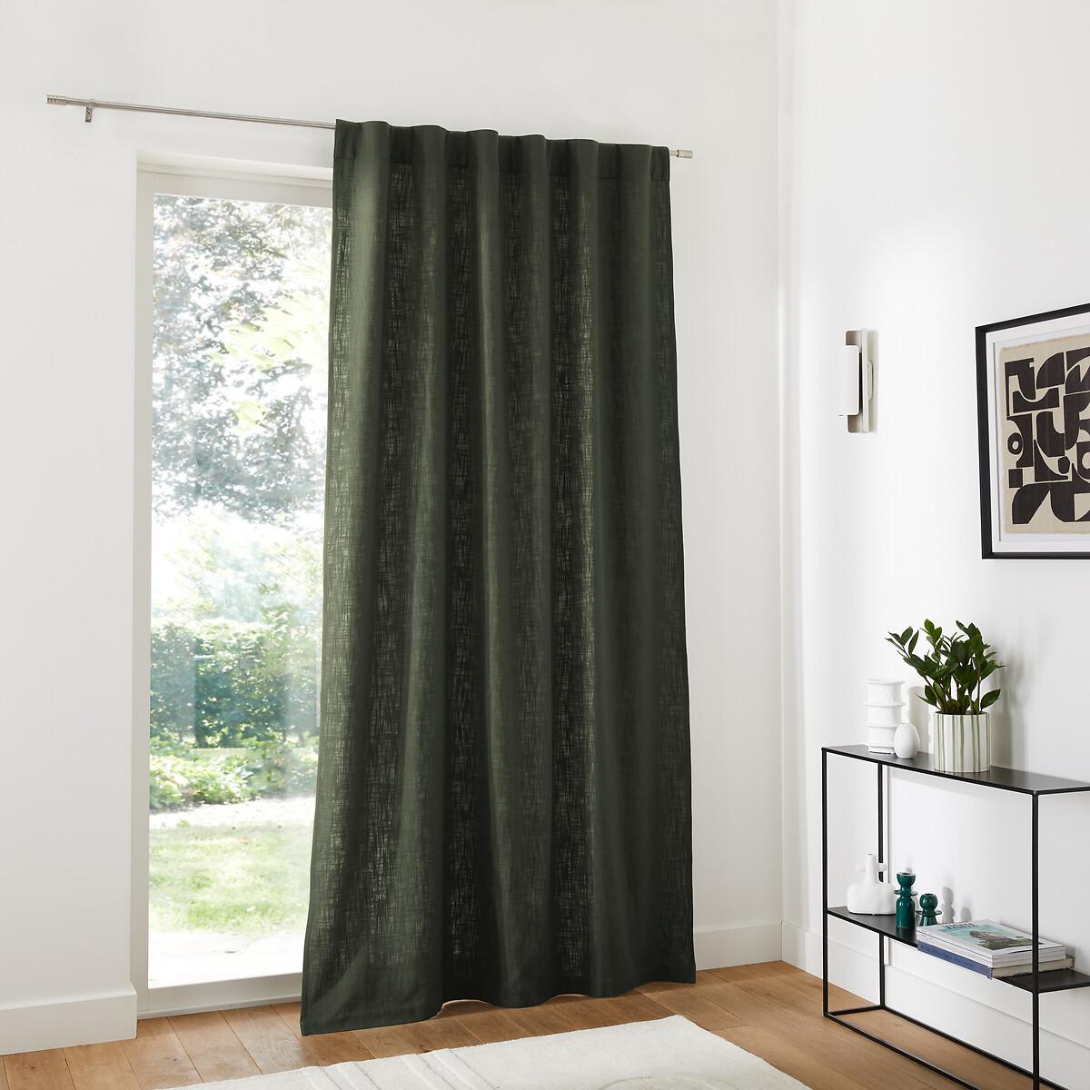 With its flamed cotton and textured weave, the Jawi curtain adds a touch of character to your windows. The fine irregularities of the thread create a subtle relief, for a natural, authentic look, ideal for a warm, modern interior. Cotton is part of our daily lives. We love it for its suppleness, softness and ease of care. The tabs give a regular wave to the curtain and an impeccable straight fall. Hidden behind the fabric for an impeccable finish, they also hide the rod. Product Details • 100% cotton, (240g/m²) • Textured cotton • Top finish : hidden tabs • Finished bottom :Plain hemmed edging. To help you in the choice and maintenance of your curtains, do not hesitate to consult our guide by typing "Curtain Buying Guide" in our search engine on the site. Care Advice • Machine washable at 30°C • Maximum shrinkage after washing : Approximately 5 to 7%. Fabrics made from natural fibres may shrink in the first wash. Always wash your curtains before making any alterations. • Do not tumble dry • If you don't need to iron them (linen curtains, Voile Panel...), let the curtains air dry by hanging them immediately after washing, making sure to spread them out to their full width. • If you want to iron your curtains, we recommend using a low-temperature steam iron or a steamer. Dimensions • Drop 250 x Width 140cm • Drop 300 x Width 140cm • Drop 350 x Width 140cm • OEKO-TEX® Standard 100. Standard 100 certification by OEKO-TEX® tests textile products for harmful substances via an independent, international label.