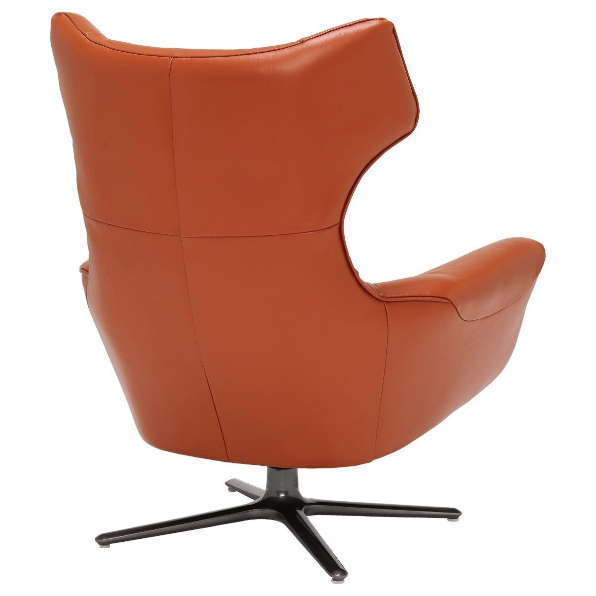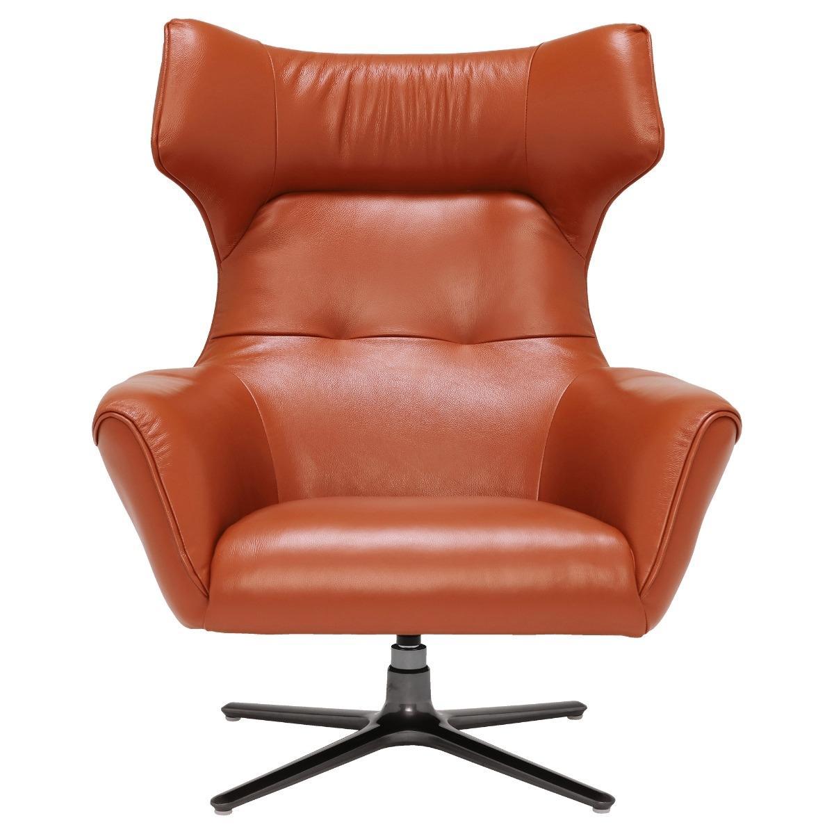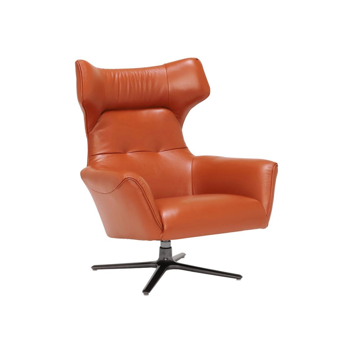 Design. The Jax Swivel Chair in Melbourne Ochre adds a pop of bold colour and daring design to your living space. Whether you want a unique seat for guests to rush to, or provide yourself with a selfish spot for relaxation, the Melbourne Ochre Jax Swivel Chair is a must have. The bright orange leather sitting atop a sociable swivel base features a distinguished curved head and deep arm rests for added comfort.