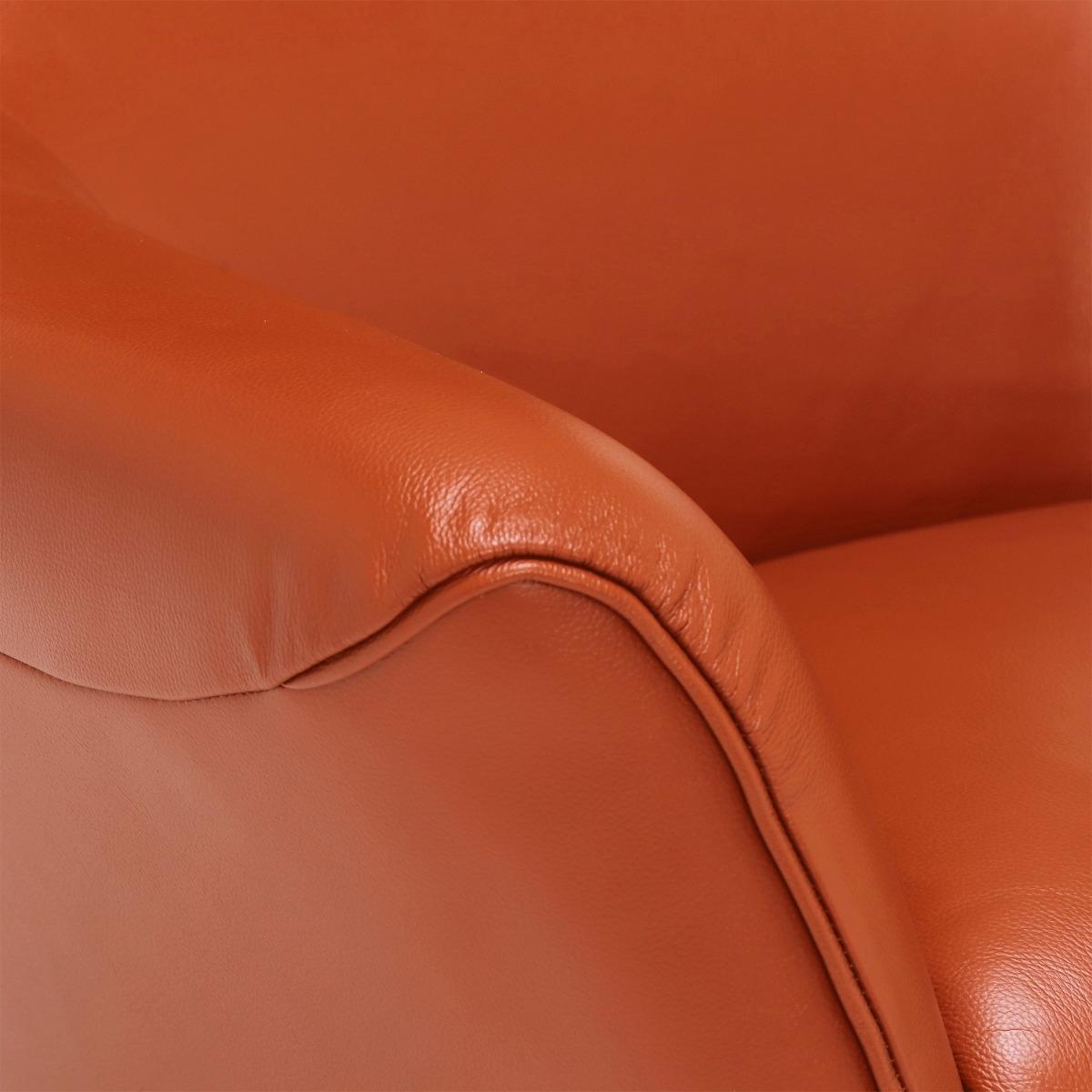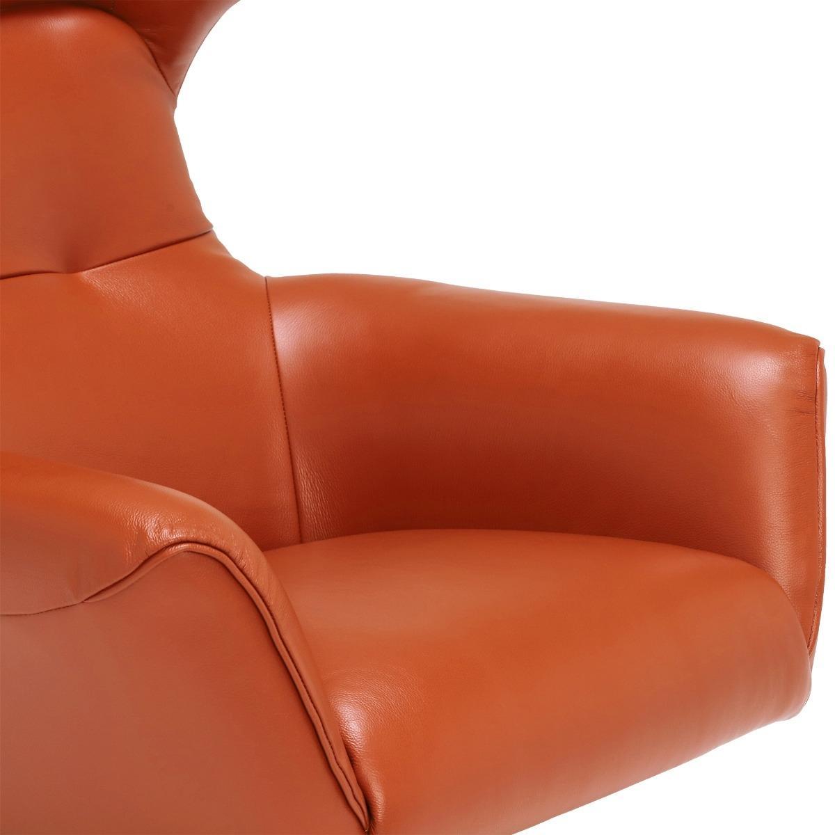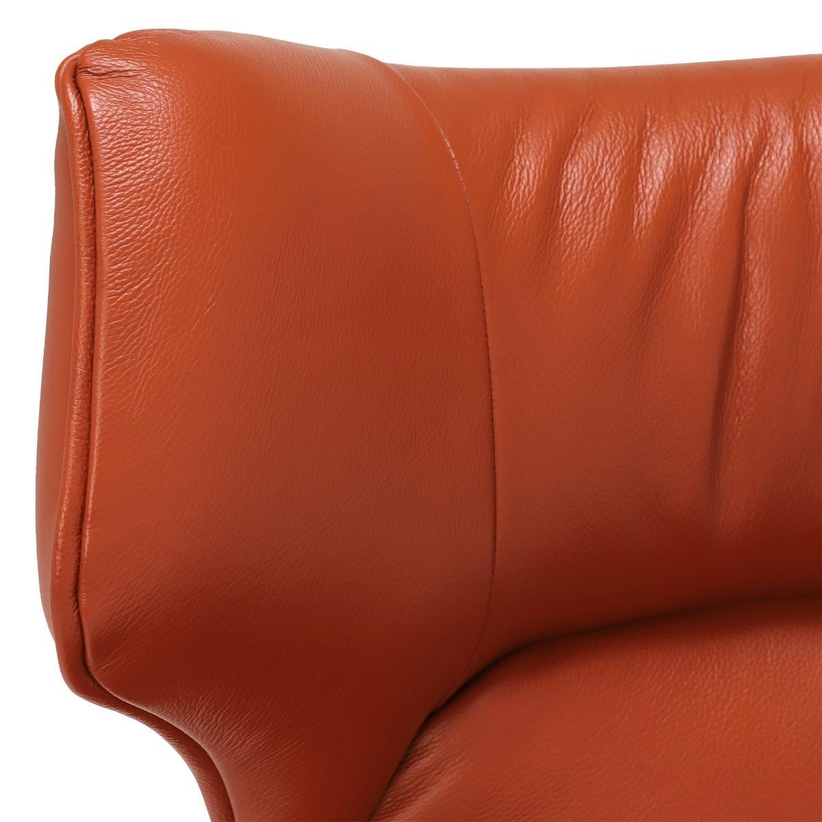 Design. The Jax Swivel Chair in Melbourne Ochre adds a pop of bold colour and daring design to your living space. Whether you want a unique seat for guests to rush to, or provide yourself with a selfish spot for relaxation, the Melbourne Ochre Jax Swivel Chair is a must have. The bright orange leather sitting atop a sociable swivel base features a distinguished curved head and deep arm rests for added comfort.