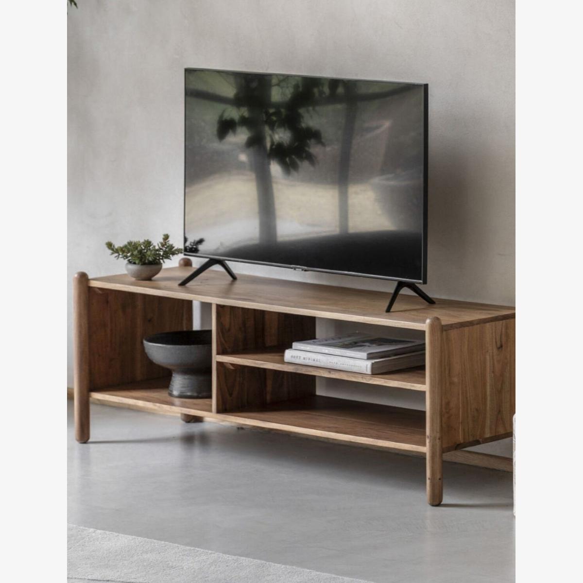 With a retro design influence and modern twist, this media unit will add a little style to your media set up. Made with rich Mango wood the split shelf layout offers plenty of space for all of your electronics without sacrificing style. Coordinating pieces also available.