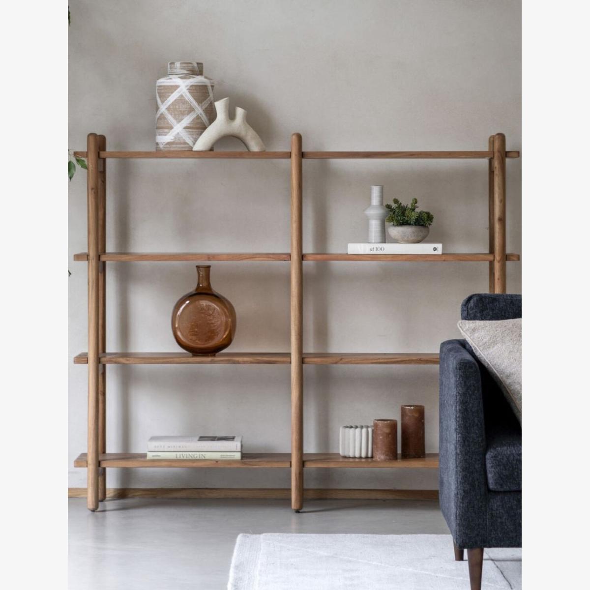 With an open design, this display unit is perfect for showing off your book collection and favourite artistic pieces. Made from rich Mango wood the wide 4 shelf unit has a clear vintage design influence with its slim shelves and rounded uprights, making it perfect for modern eclectic interiors. Coordinating pieces also available.