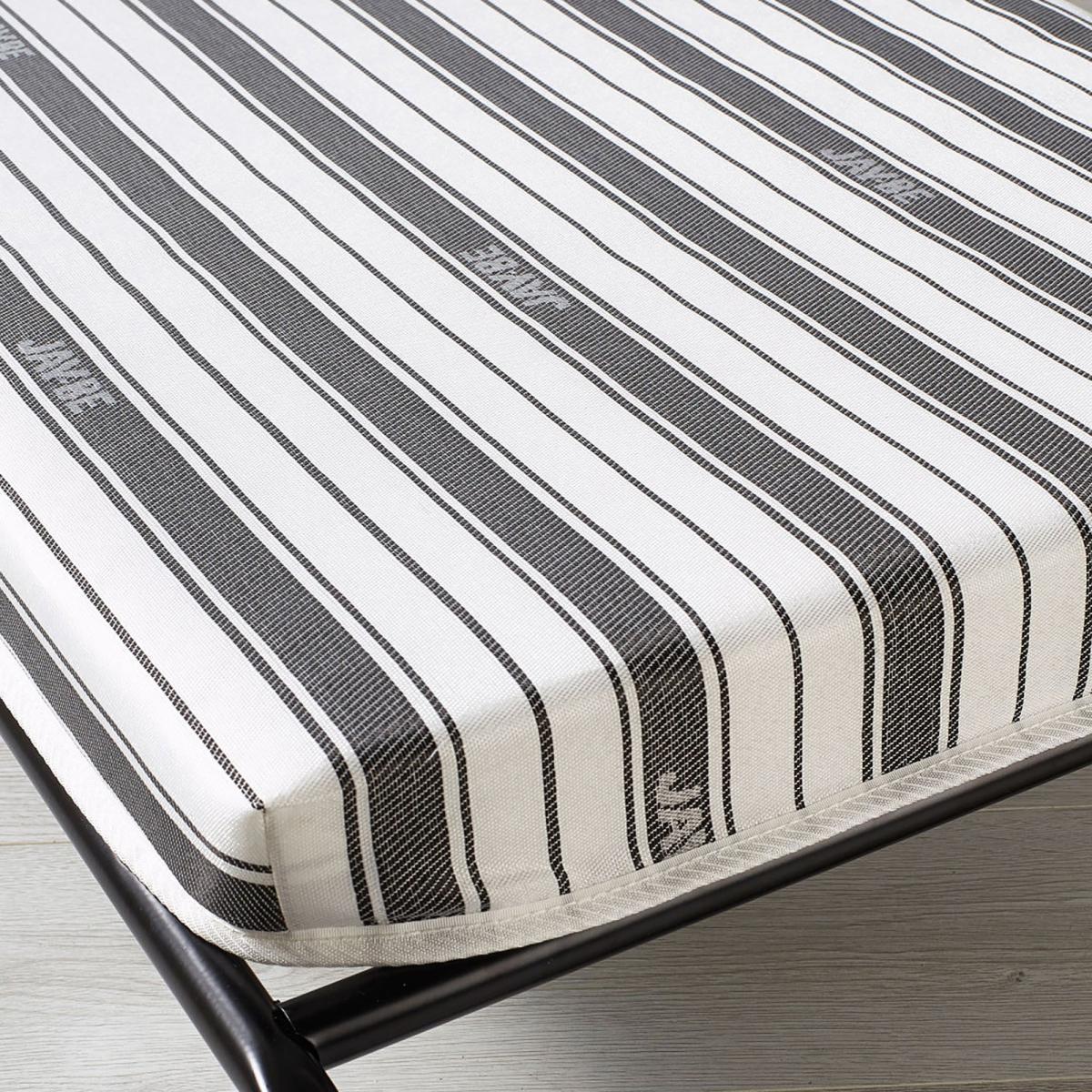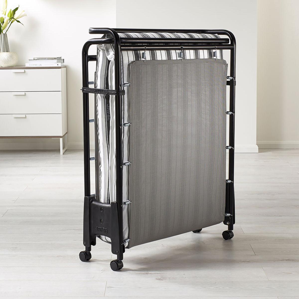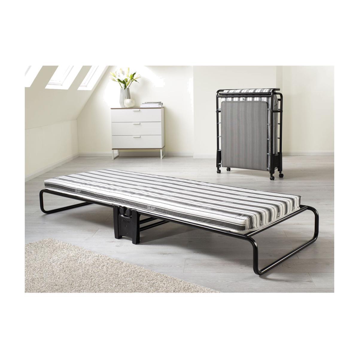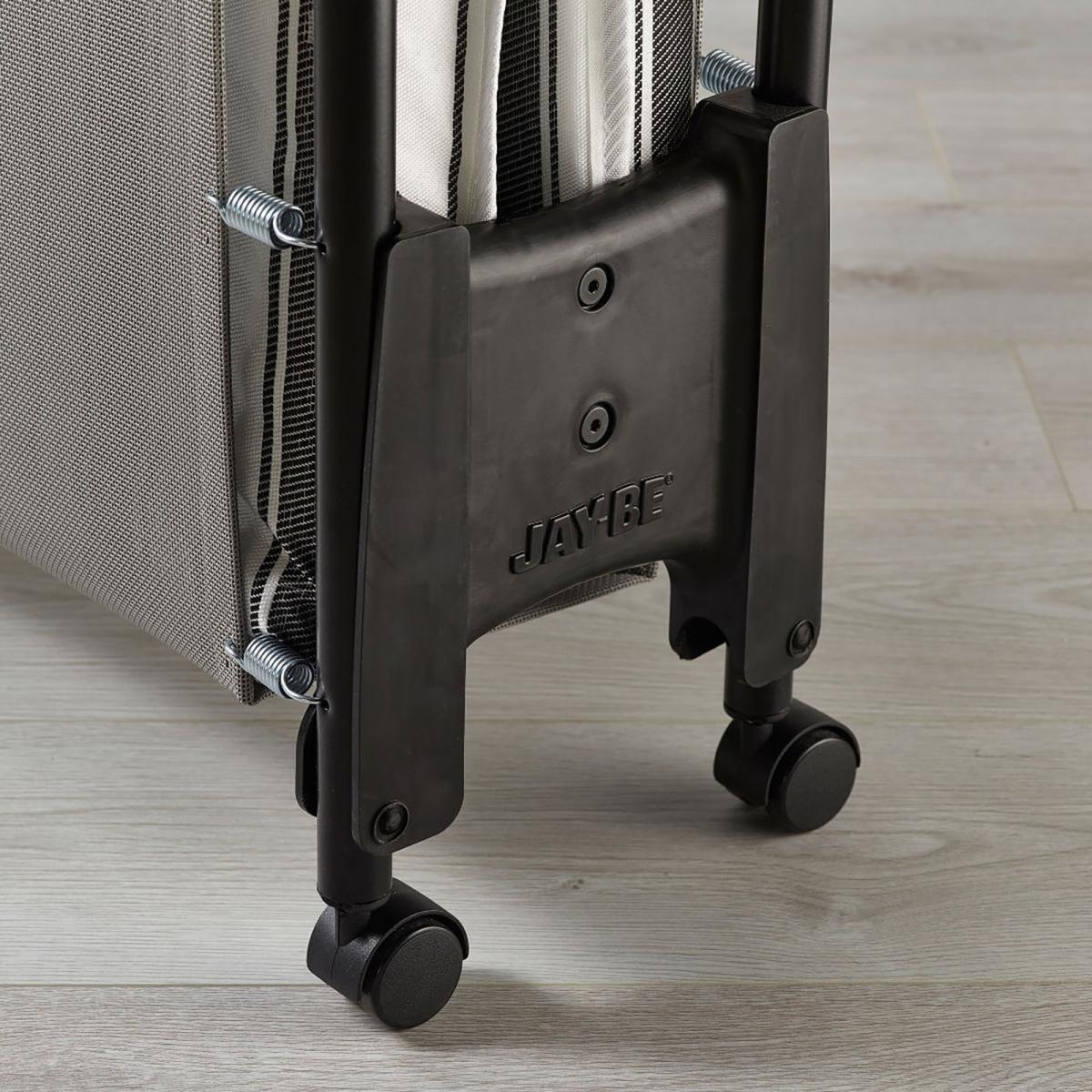 The Jay-Be Advance Folding Bed expertly combines modern sustainable materials with innovative design to offer comfort and durability. The patent-pending design makes the Bed; sturdier when open, more compact when folded, and space-saving. This bed features 360° castors that allow you to simply glide this guest bed to where you need it. For ultimate comfort and full-body support, the Jay-Be Advance Folding Bed comes with a Rebound e-Fibre mattress which rests on the unique J-Tex sprung base system. Suspended using high-tension springs, the J-Tex sprung base system is extremely strong and independently tested and proven to perform as well as regular permanent beds. Developed with our planet in mind, the exclusive Jay-Be Rebound e-Fibre mattress is created by bonding specially engineered fibres made from recycled plastic materials - preventing them from going to landfill or into our oceans. Jay-Be e-Fibre is also 100% recyclable again after use so that your mattress can be responsibly disposed of. All Jay-Be Folding Beds achieve British, European, and Internationally recognised safety standards and come with a free lifetime frame guarantee for your complete quality assurance.