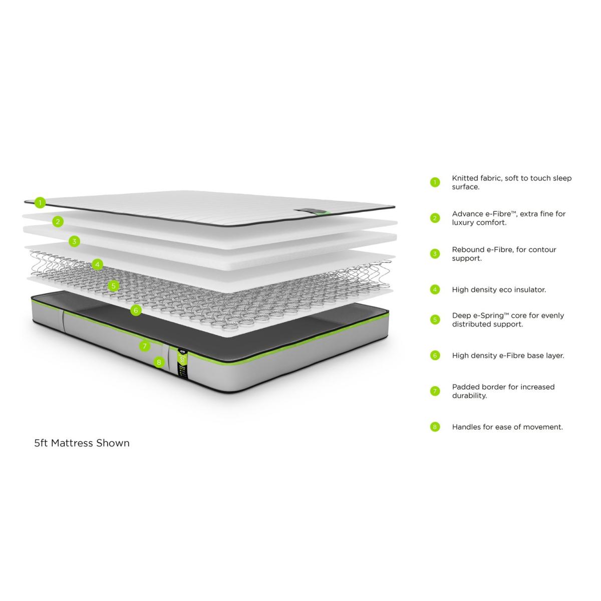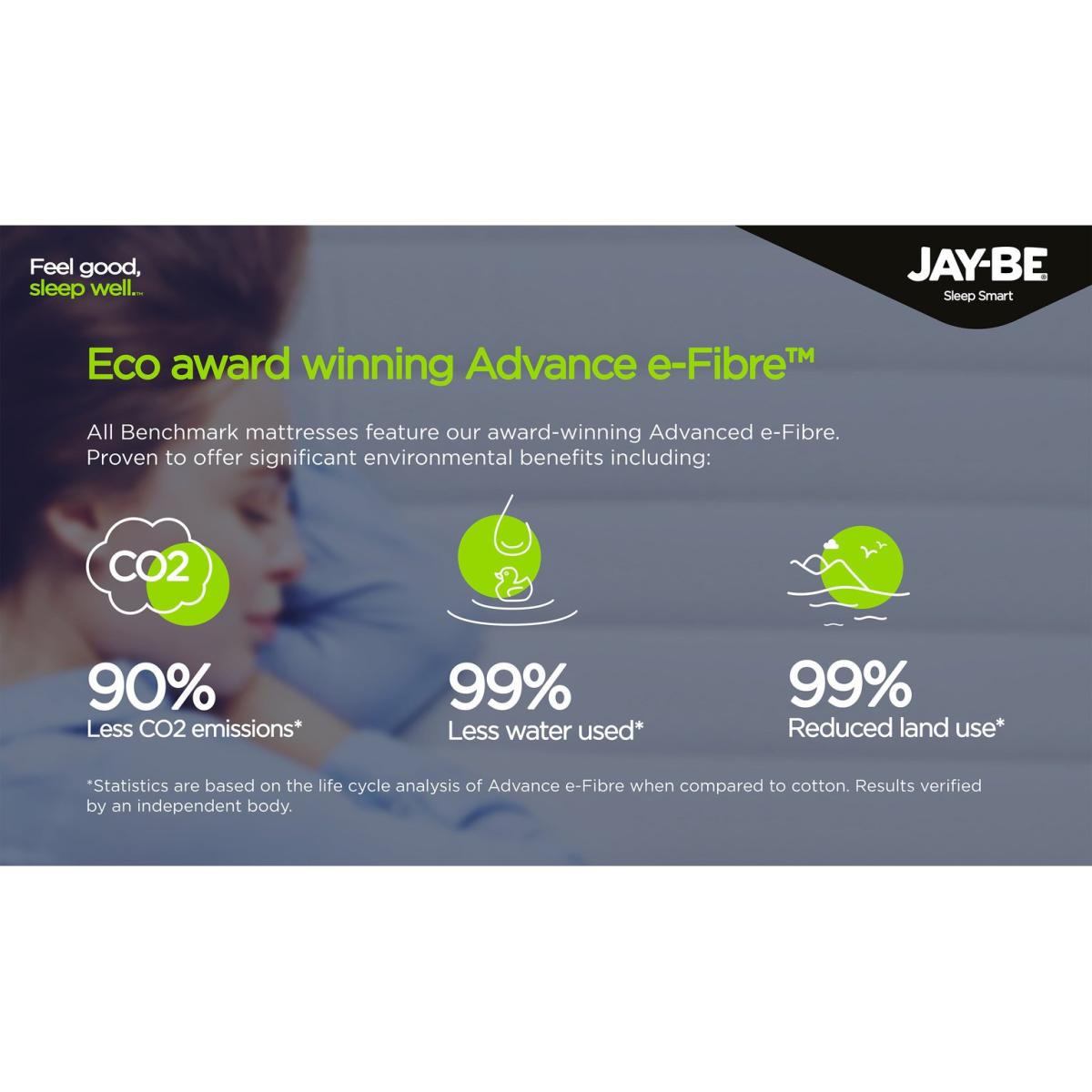 The Jay-Be Benchmark S1 mattress has a deep e-Spring core topped with a supportive comfort layer of Rebound e-Fibre providing contour support and a super soft Advance e-Fibre layer for improved moisture and temperature regulation. Made in the UK and designed with the environment in mind, all Jay-Be mattresses are 100 percent foam free and feature award-winning sustainable sleep technology; reducing land use, water consumption and CO2 emissions to help protect the future of our planet. Eco friendly e-Fibre comfort layers. 100 percent foam free, free from harmful chemical emissions. Breathable comfort layers to reduce moisture. Part of the Benchmark Comfort Essential collection. Firm feel. Open coil mattress with 192 springs. Knit cover with quilted finish. No roll together. Anti allergy. Mattress size W90, L190, D19cm. No-turn mattress. Rotate mattress regularly. Made in the UK. General information: Manufacturer's 5 year guarantee.