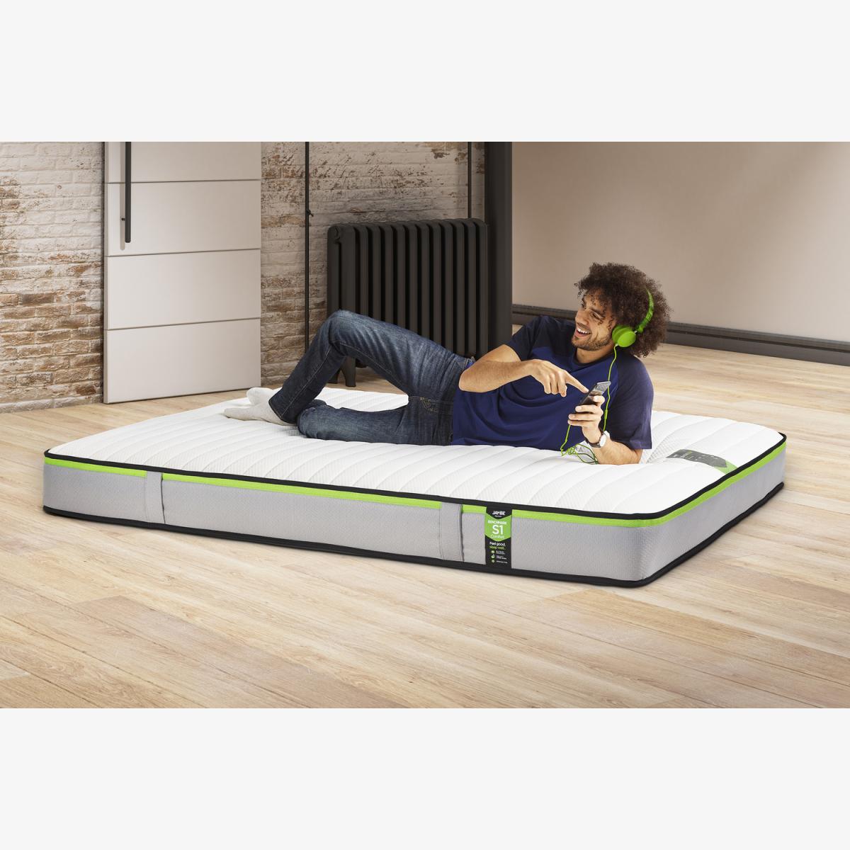 Developed using the latest sustainable materials the Jay-Be Benchmark S1 mattress offers essential support. A deep e-Spring core is topped with a supportive cushioning layer of Rebound e-Fibre and super soft Advance e-Fibre for improved moisture and temperature regulation, guaranteeing a comfortable nights sleep.